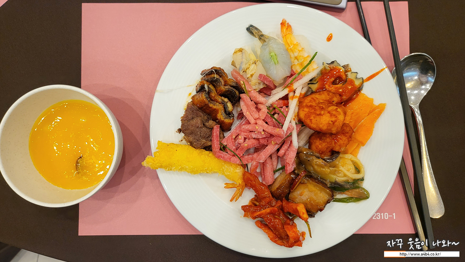 식당은 8명 정도가 앉는 원형 테이블과 음식은 뷔페식으로 준비되어 있습니다. 한 쌍만 두 시간 예식을 하니 하객이 중복될 걱정은 없고요. 음식도 잘 나오는 편입니다. 북적이지도 않고, 이모님들도 기업형 예식장처럼 테이블 채우기도 없어 일행과 함께 편하게 식사 가능합니다.