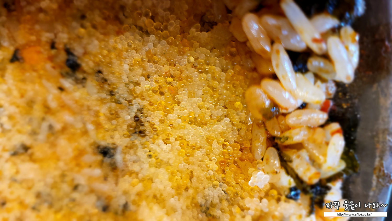 사진과 같이 밥 위에는 빽빽하게 알이 올라가 있고요. 알마니 볶음밥이라는 이름이 이해 됩니다만, 알이 톡톡튀는 그런 식감과 맛이 보이지는 않네요.