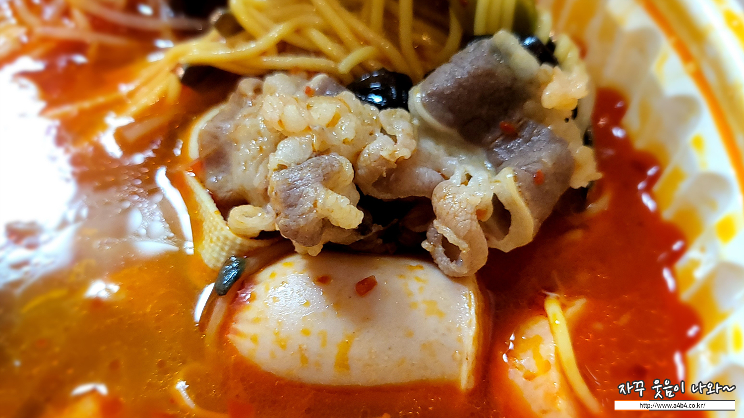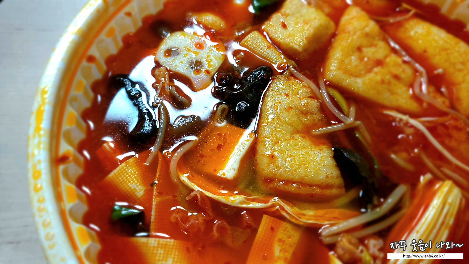 새우볶음밥 세트메뉴 (16,100원)에 나오는 마라탕입니다. 토핑은 숙주, 건두부, 푸주, 알배기,청경채,팽이버섯,백목이버섯,비엔나소세지,옥수수소세지,유부,중국당면,연근,두부피쉬볼,새송이버섯,메추리알,목이버섯,표고버섯,문어피쉬볼이 들어있고 소고기 제외된 조합입니다.