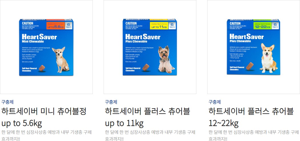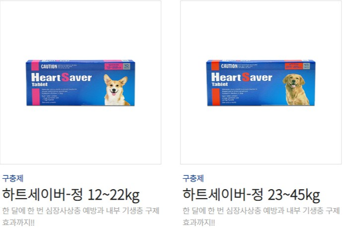 처음에는 매월 동물병원에 방문해서 검사 받고 심장사상충 약을 받아오곤 했는데요. 비용도 비용이지만 일정 잡기 힘드네요.꼭 예약하면 그 시간에 일이 생기기도 하고...그런데, 얼마전 약국에서 직접 투여하는 반려견 심장사상충약인 중앙바이오텍 하트세이버를 판매하고 있어 구입 했습니다. 두 가지 타입과 강아지 몸무게에 따라 제품이 나뉘어 판매되고 있는데요.