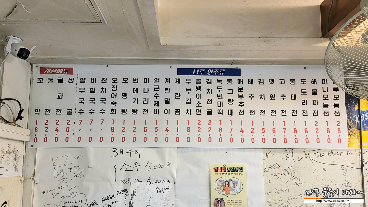 그 사이에 주문했던 골뱅이 소면은 나오지 않고 있습니다. 주문이 밀리다 보니 기다려도 기다려도 주문한 안주가 나오지 않네요. 아이가 집에올 시간은 다가오고. 이게 바로 잠실나루역 맛집의 위엄인가?