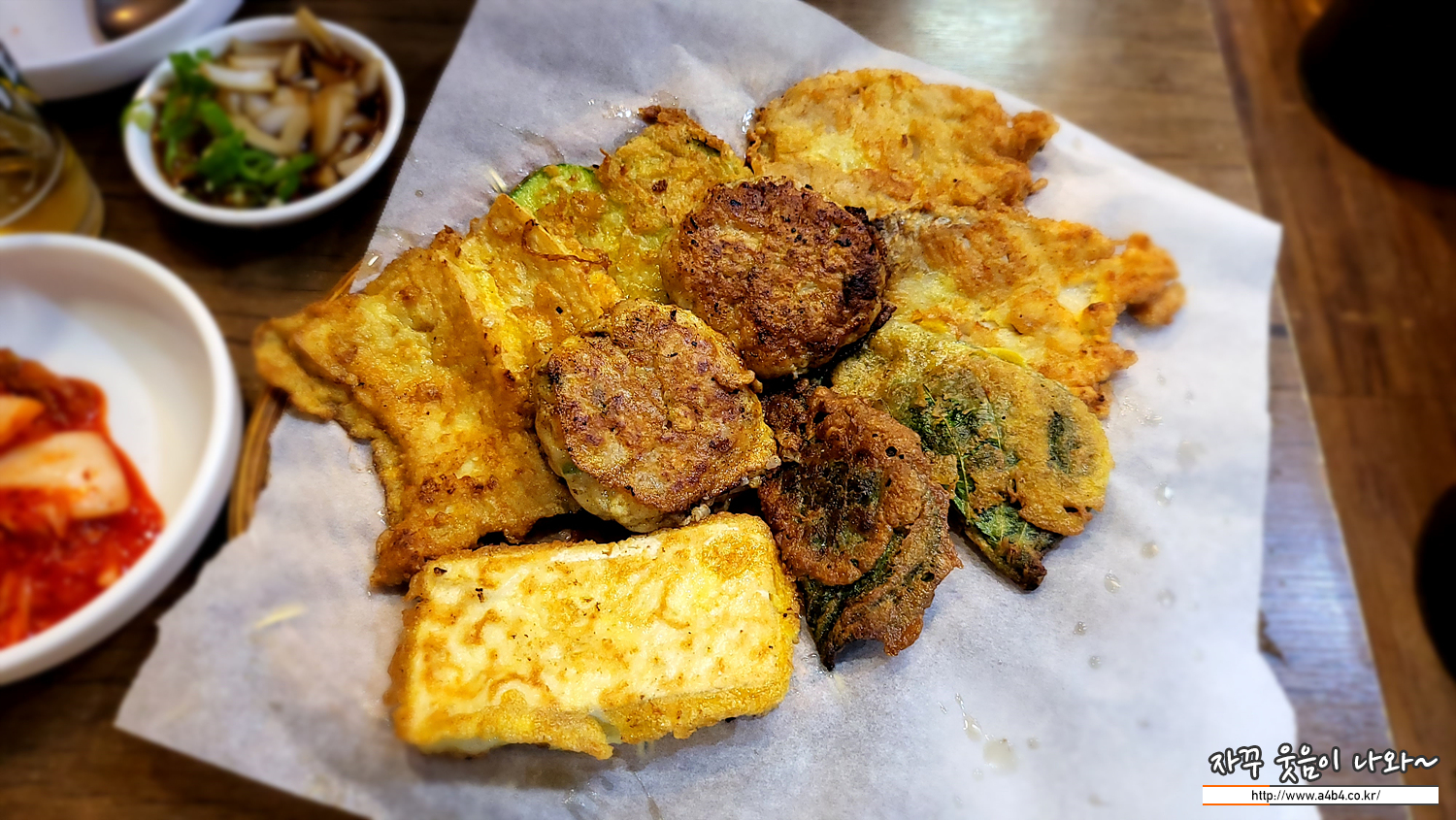 주문 20분 후 나온 미니모둠전입니다. 나루 모둠전의 절반 사이즈인데요. 혼자 먹기에는 많고 둘이 먹기에는 약간 아쉬운, 둘이 먹는다면 사이드 메뉴 하나 필요한...