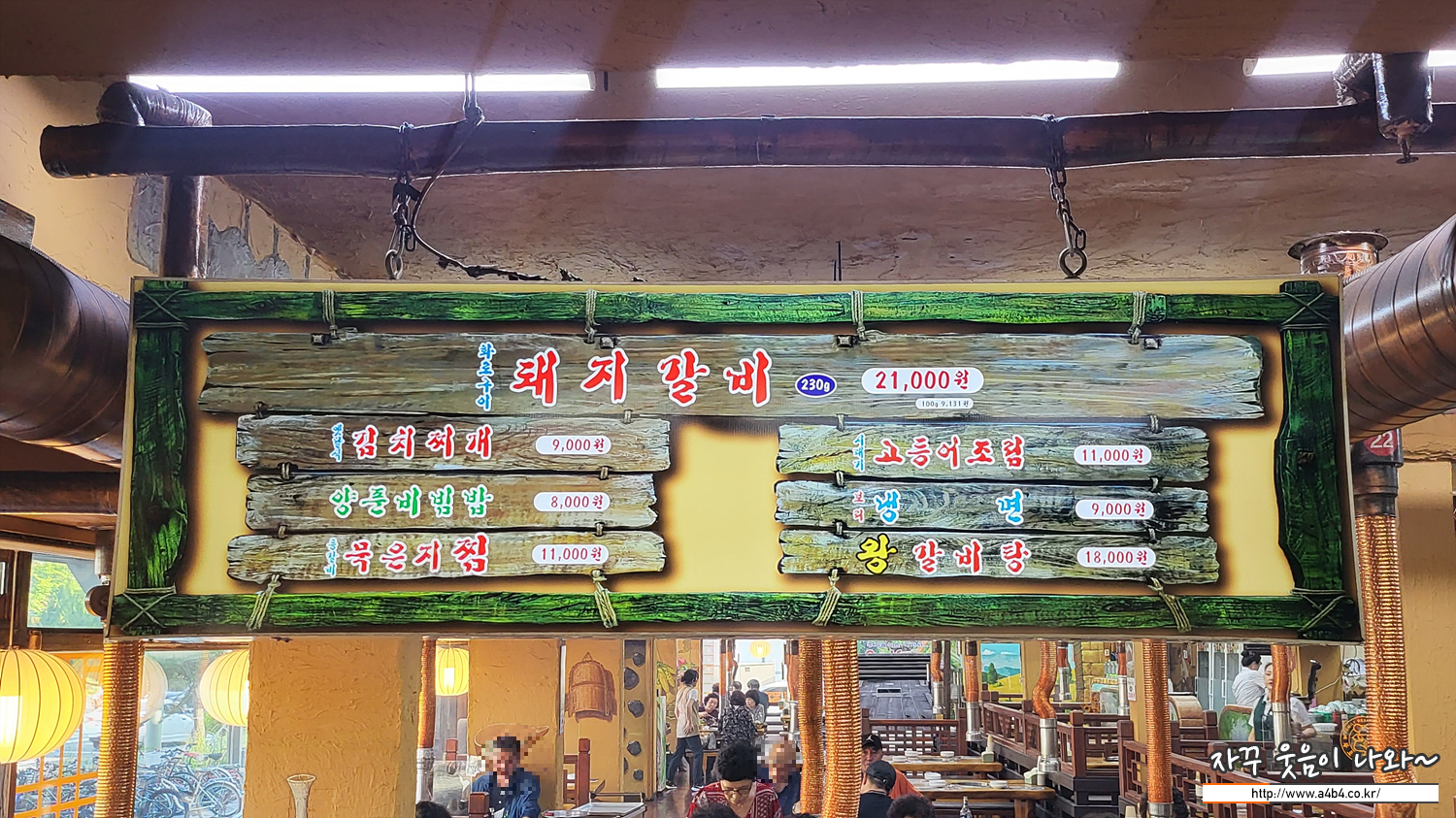 강동구청역 맛집 화로구이 돼지갈비 메인 메뉴는 돼지갈비 입니다. 230g 기준 21,000원입니다. 물론 입구에는 소고기도 판매하고 있지만 이곳에서는 돼지갈비가 진리...이외에도 식사메뉴로 양품비빔밥, 묵은지찜, 고등어조림, 왕갈비탕 등 식사메뉴도 준비되어 있습니다. 고기 안먹고 식사메뉴만 먹어도 무난한 곳입니다.