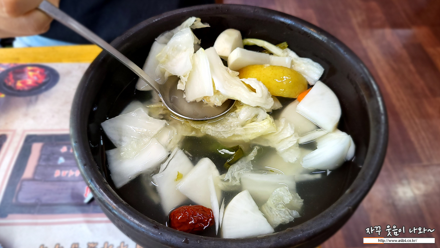 해당 반찬과 물은 셀프코너에서 추가로 리필이 가능합니다만 김치는 기본상에 나오지 않아서 별도로 가지고 오셔야 합니다. (저희 테이블만 실수하신 것인지, 아니면 김치는 셀프로 가지고 와야 하는지는 잘 모르겠네요.)