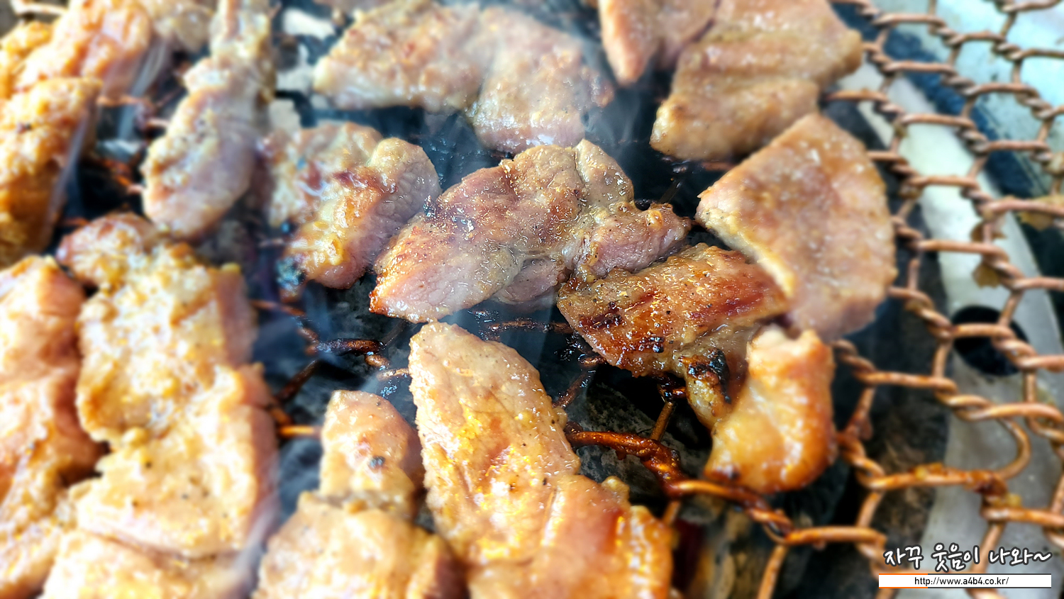 물가도 많이 오르고 그래서 그런지 돼지갈비는 스스로 굽고 자르셔야 합니다. 양념된 고기여서 잠깐 한눈팔면 타버리는 문제점도 있으니, 누군가는 정신 바짝 차리고 자르고 뒤집고...