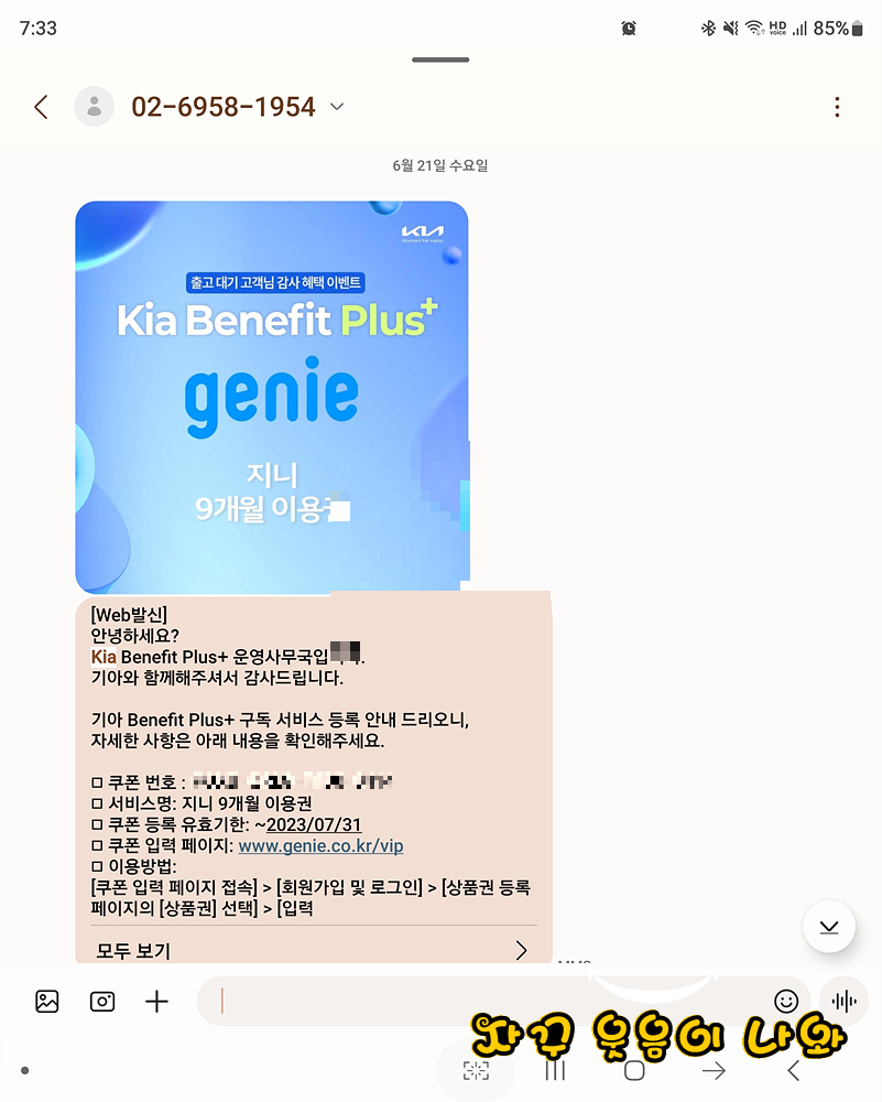 앞에서도 언급했듯 차량 출고에 13개월이 걸렸다고 했는데요. 장기 대기 고객에는 지니 9개월 무료이용권과 꽃배달 서비스 1회 이용권을 주네요.