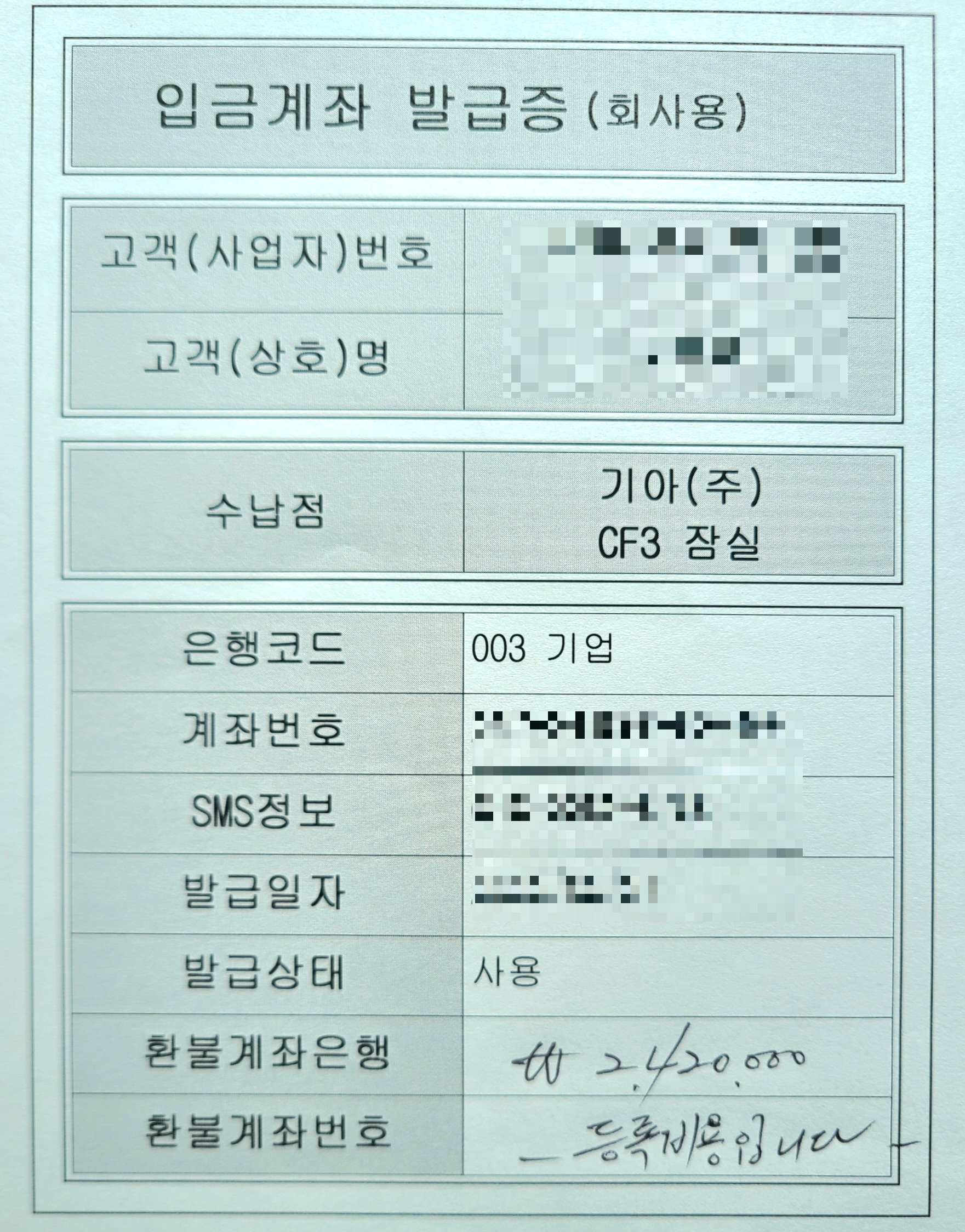 행정비용 2,420,000원