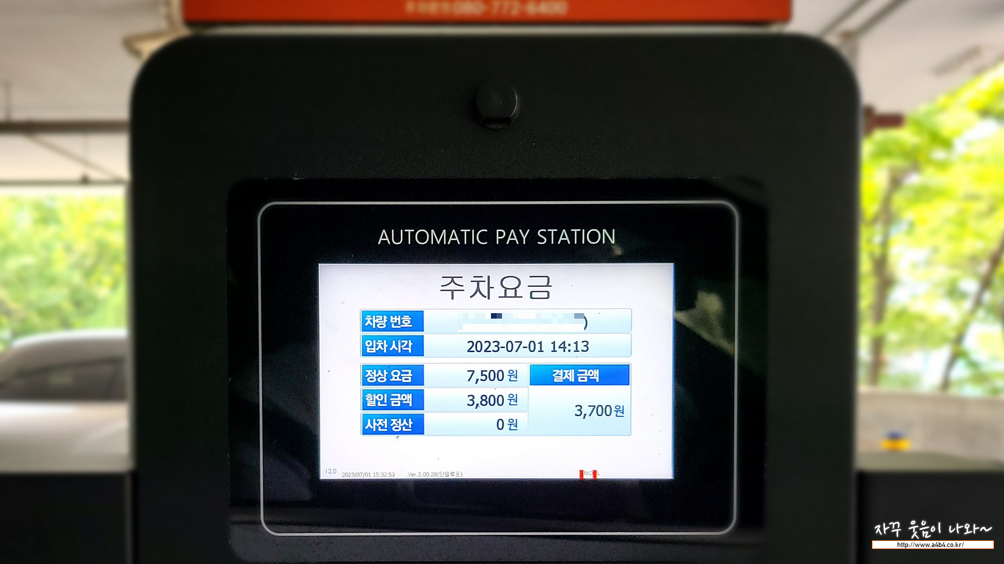 저는 하이브리드 차량으로 주차요금 50% 할인이 가능한데요. 아래와 같이 6,000원에서 3,700원으로 예술의전당 주차요금 할인받고 출차했네요