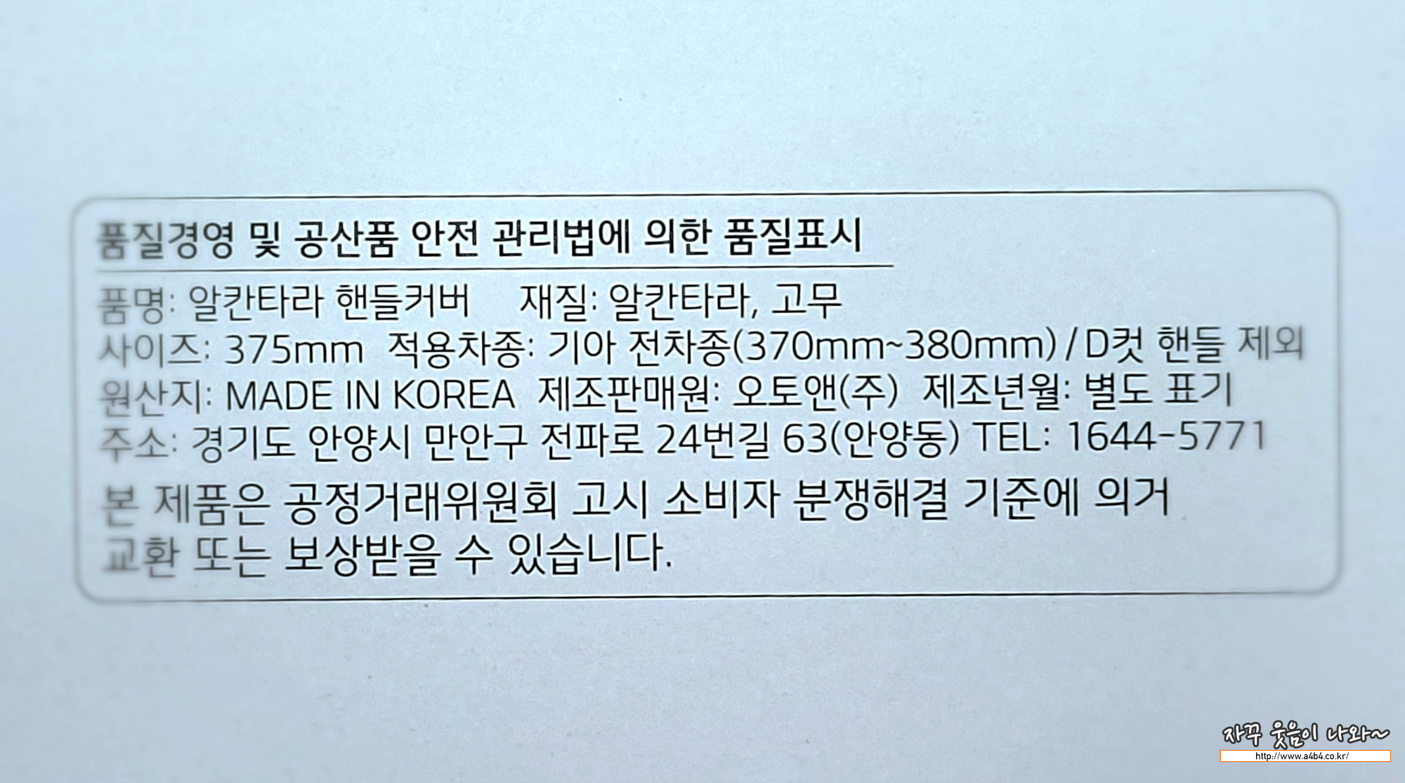 커다란 박스에 포장되어 배송되고요. 배송에는 한 2~3일 걸렸던 것으로 기억합니다. 아래와 같이 375mm 사이즈의 핸들커버로 370~380mm 사이즈의 기아 전차종에 호환되는 핸들커버 입니다. 재질은 알칸타라와 고무