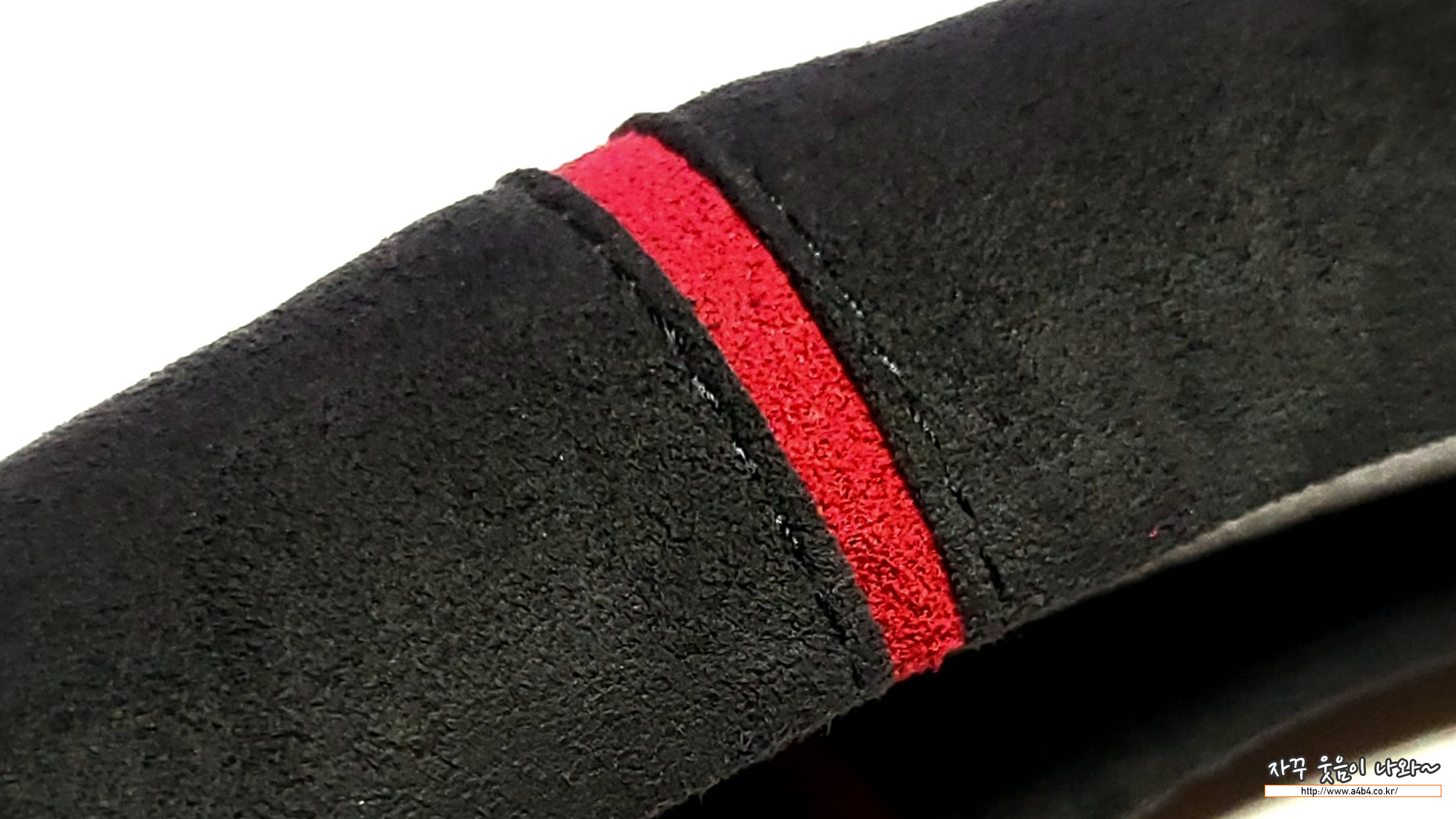 알칸타라는 '[섬유](정교하게 만든) 인조 가[섬유](정교하게 만든) 인조 가죽'이라고 오픈사전에 나오네요. 개인적으로 선호하는 촉감의 핸들커버이고 상당히 좋은 발색을 뽑아낼 수 있는 재질입니다. 저는 검정색 컬러를 선택 했는데요. 핸들 커버 중앙의 레드 컬러를 보셔도 상당히 깔끔한 발색을 보여주는 것을 알 수 있습니다. 기아 알칸타라 핸들커버 질감은 새무를 생각하시면 얼추 비슷하다는...