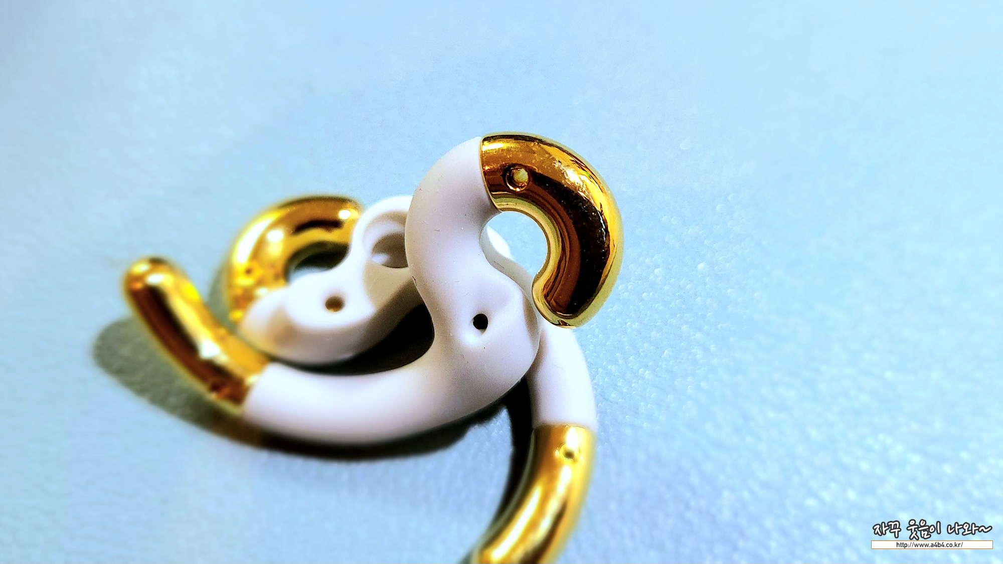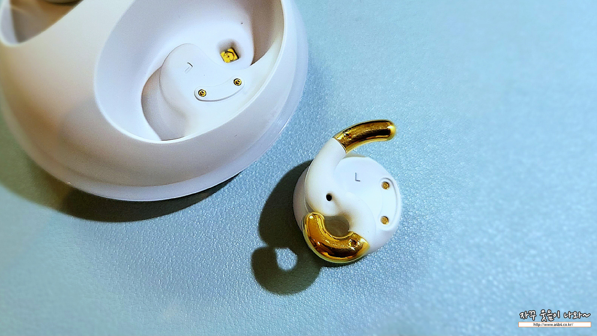 이어폰 모양은 바득알이 상각나는 디자인 입니다. 사이즈는 지름 3cm 정도로 에어팟프로와 비교해보시면 제품 사이즈를 짐작할 수 있습니다. 처음 이미지는 이어폰으로 보기에는 다소 부담되는 사이즈로 느껴지네요.