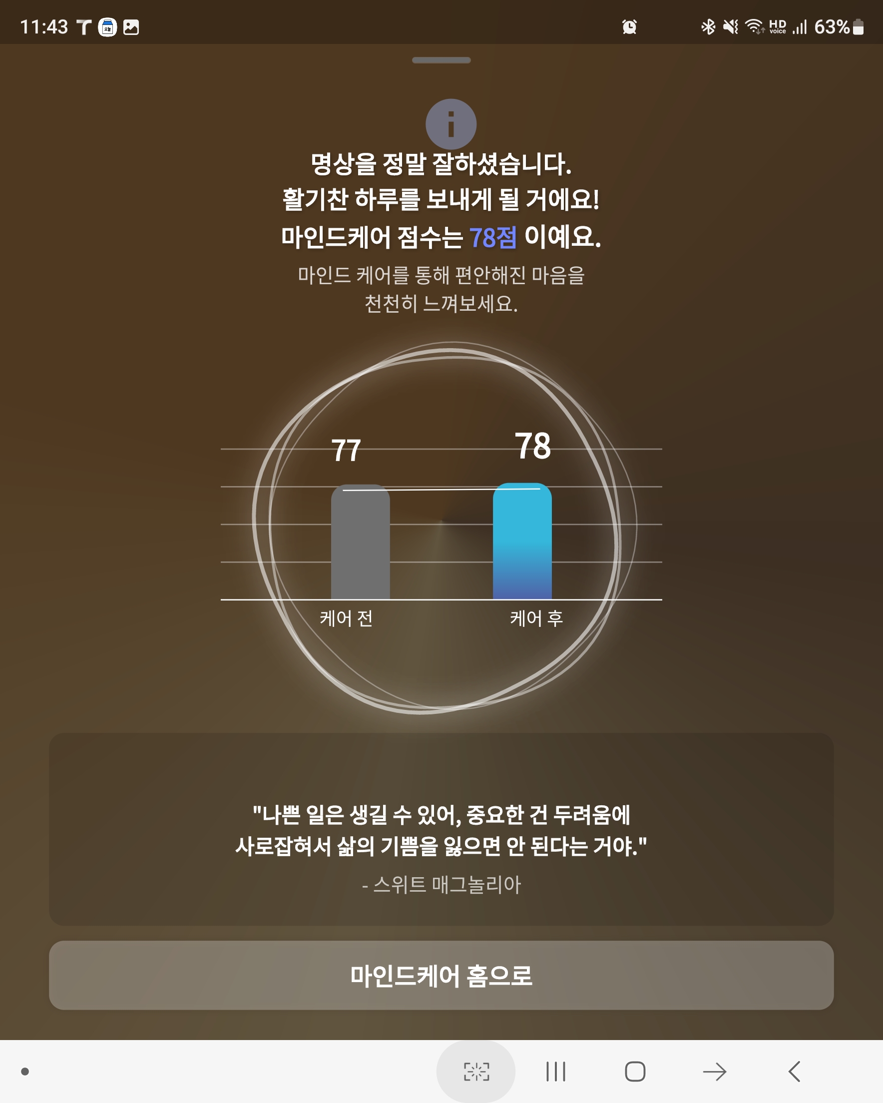 마인드 케어 기능의 경우 조용한 공간에서는 무난한 사용과 심리적 안정감을 얻는 것 같은데요.