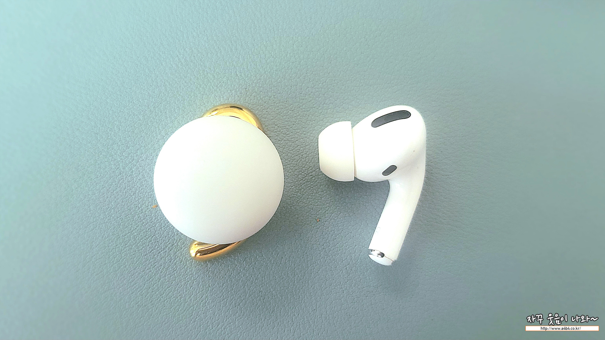 이어폰 모양은 바득알이 상각나는 디자인 입니다. 사이즈는 지름 3cm 정도로 에어팟프로와 비교해보시면 제품 사이즈를 짐작할 수 있습니다. 처음 이미지는 이어폰으로 보기에는 다소 부담되는 사이즈로 느껴지네요.