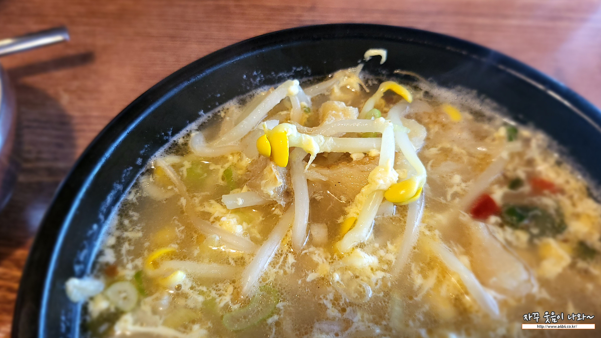 황태와 콩나물도 푸짐하게 들어 있고 뜨끈하면서 시원한 맛의 황태해장국입니다.