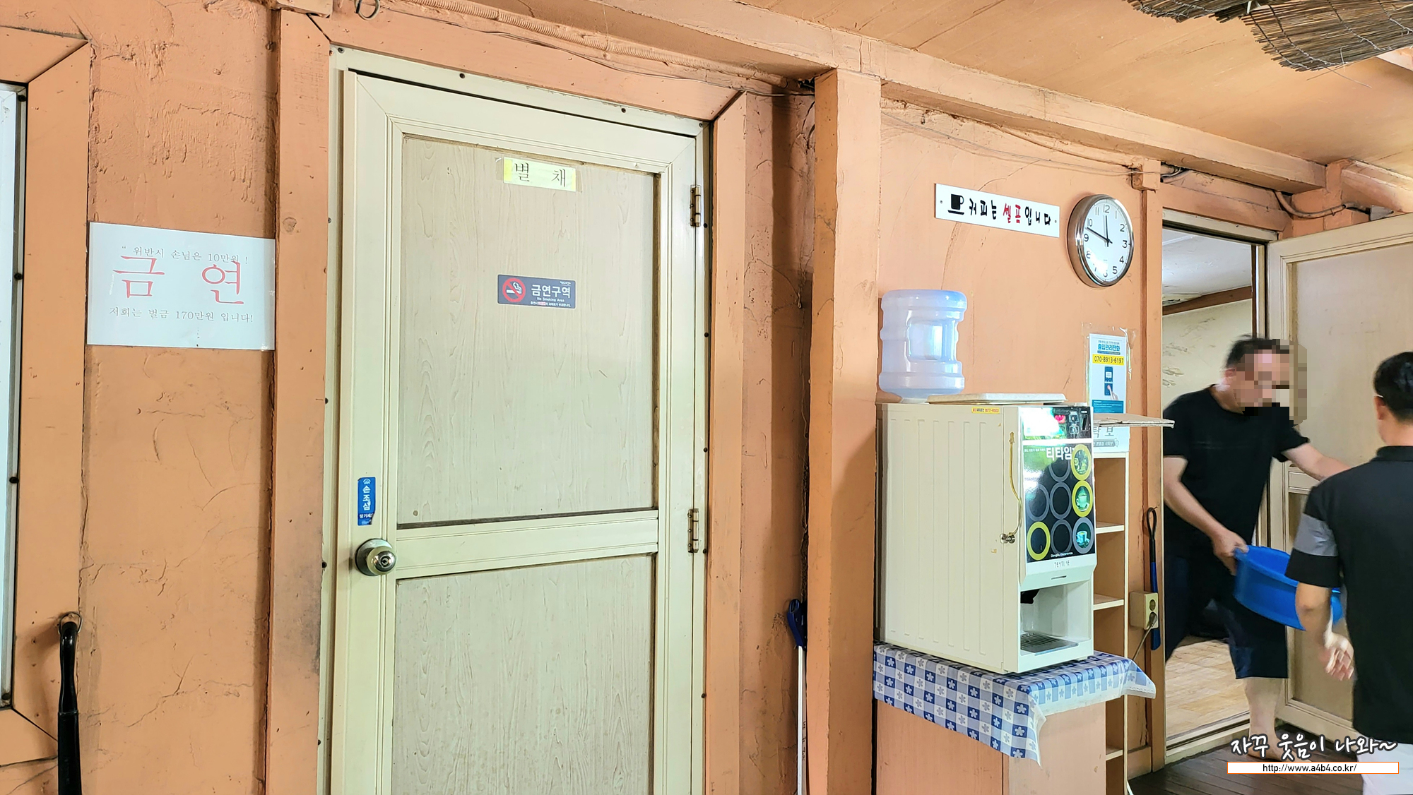 뚝배기 양평해장국 용인시청점 실내입니다. 단체 손님을 위한 좌식 룸이 준비되어 있고요. 이외에는 4인 8일... 테이블이 마련되어 있습니다. 약간 어둑어둑한 실내... 비교적 깔끔합니다.