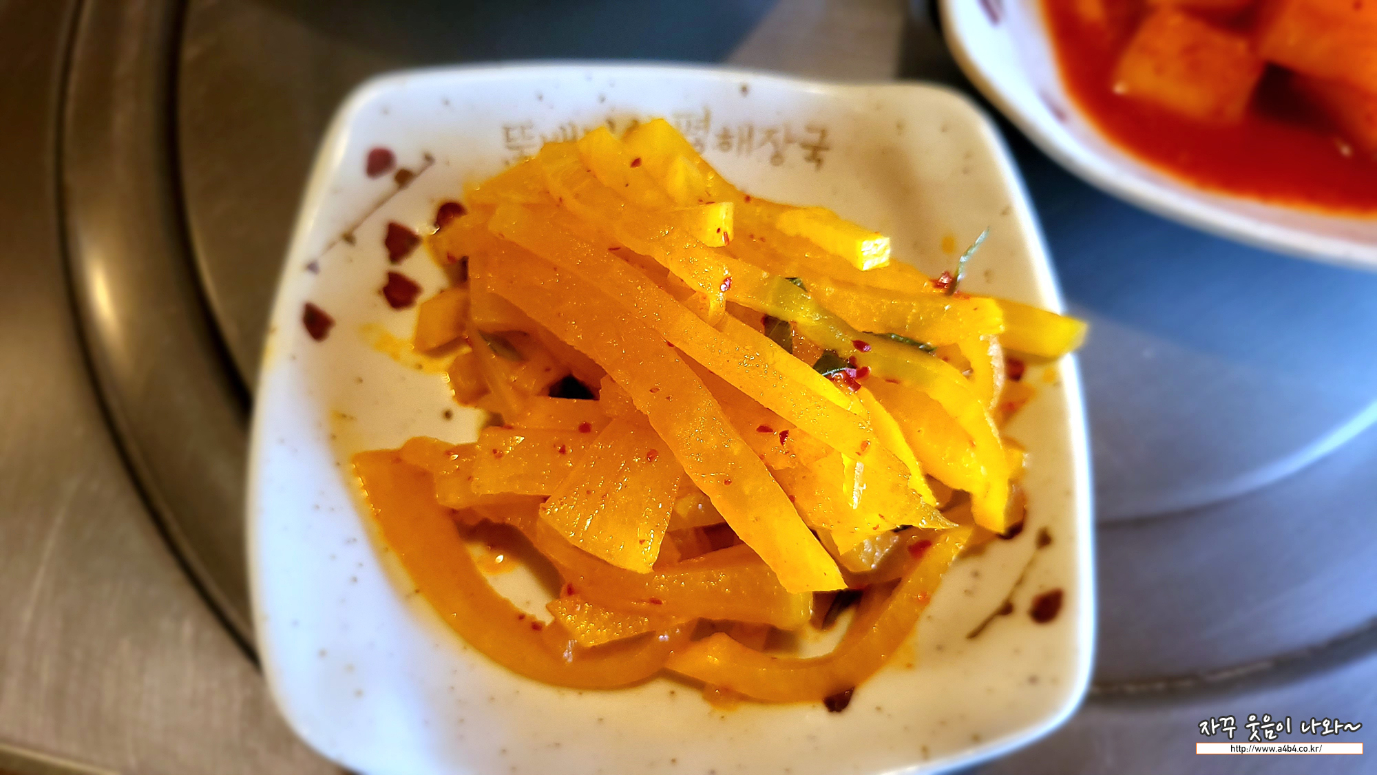 기본 반찬은 3종으로 배추김치와 깍뚜기, 단무지 무침이 나오네요.