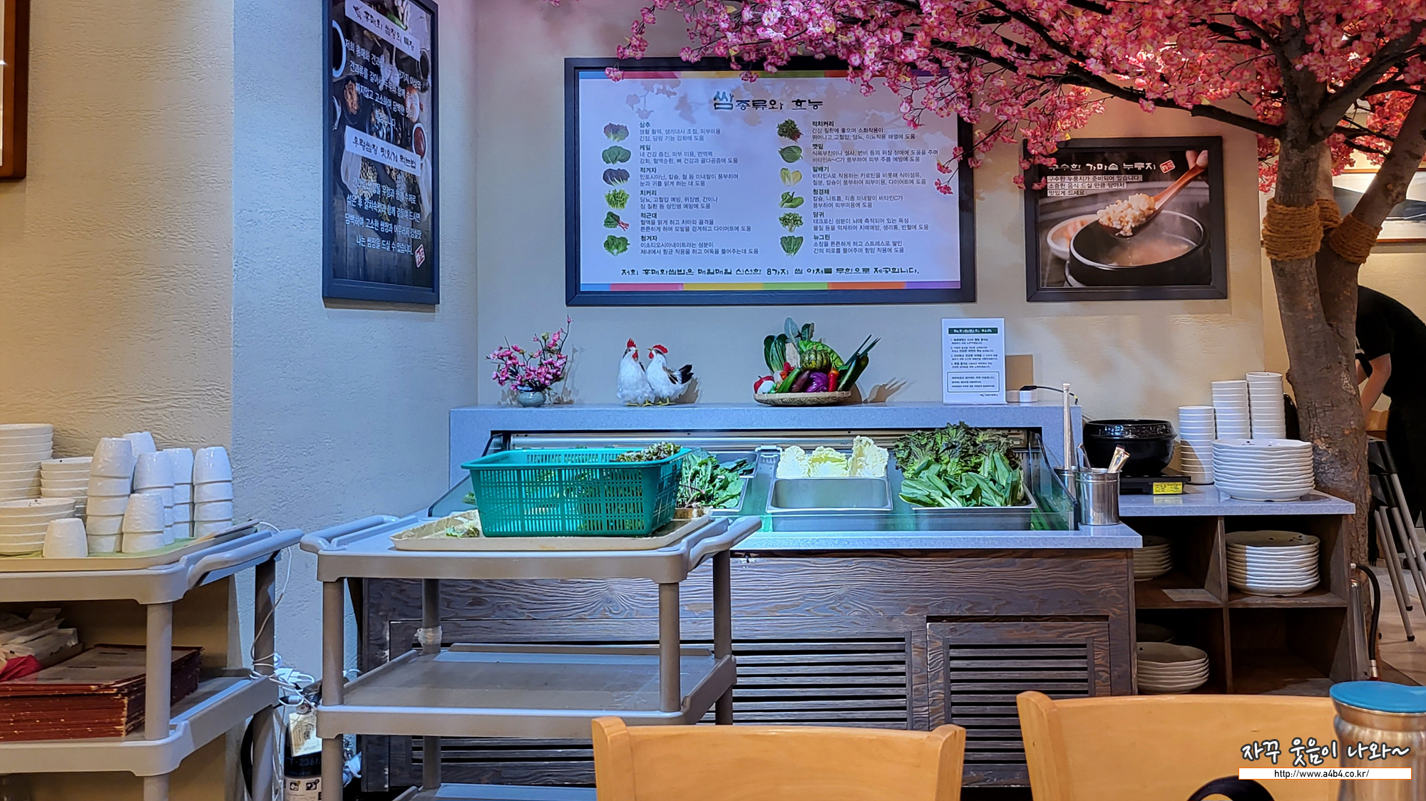 매화쌈밥 롯데백화점 잠실점 쌈야채는 이렇게 좋아하시는 야채 중심으로 무한 리필이 가능합니다. 야채는 모두 다 신선한...