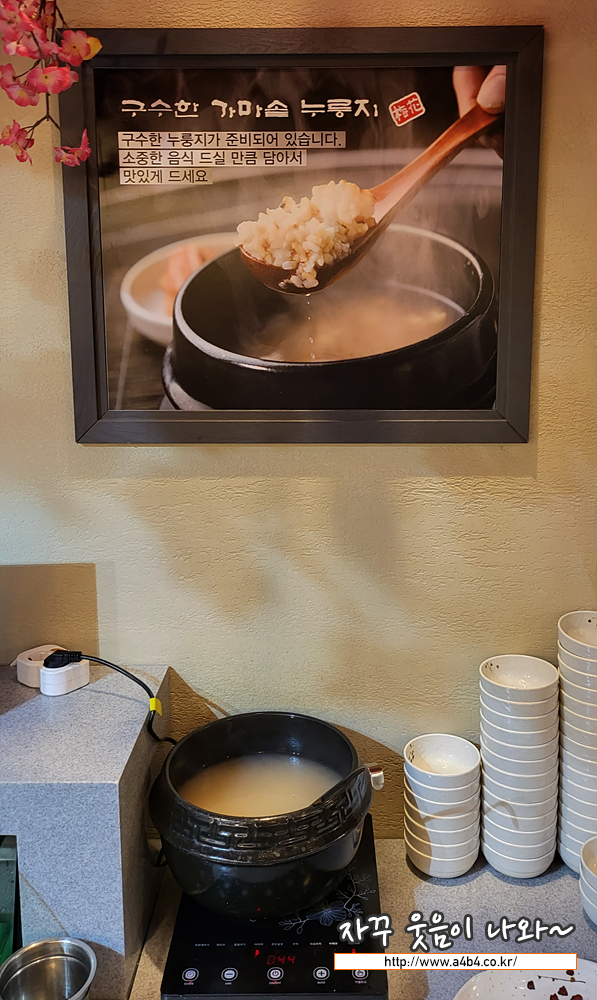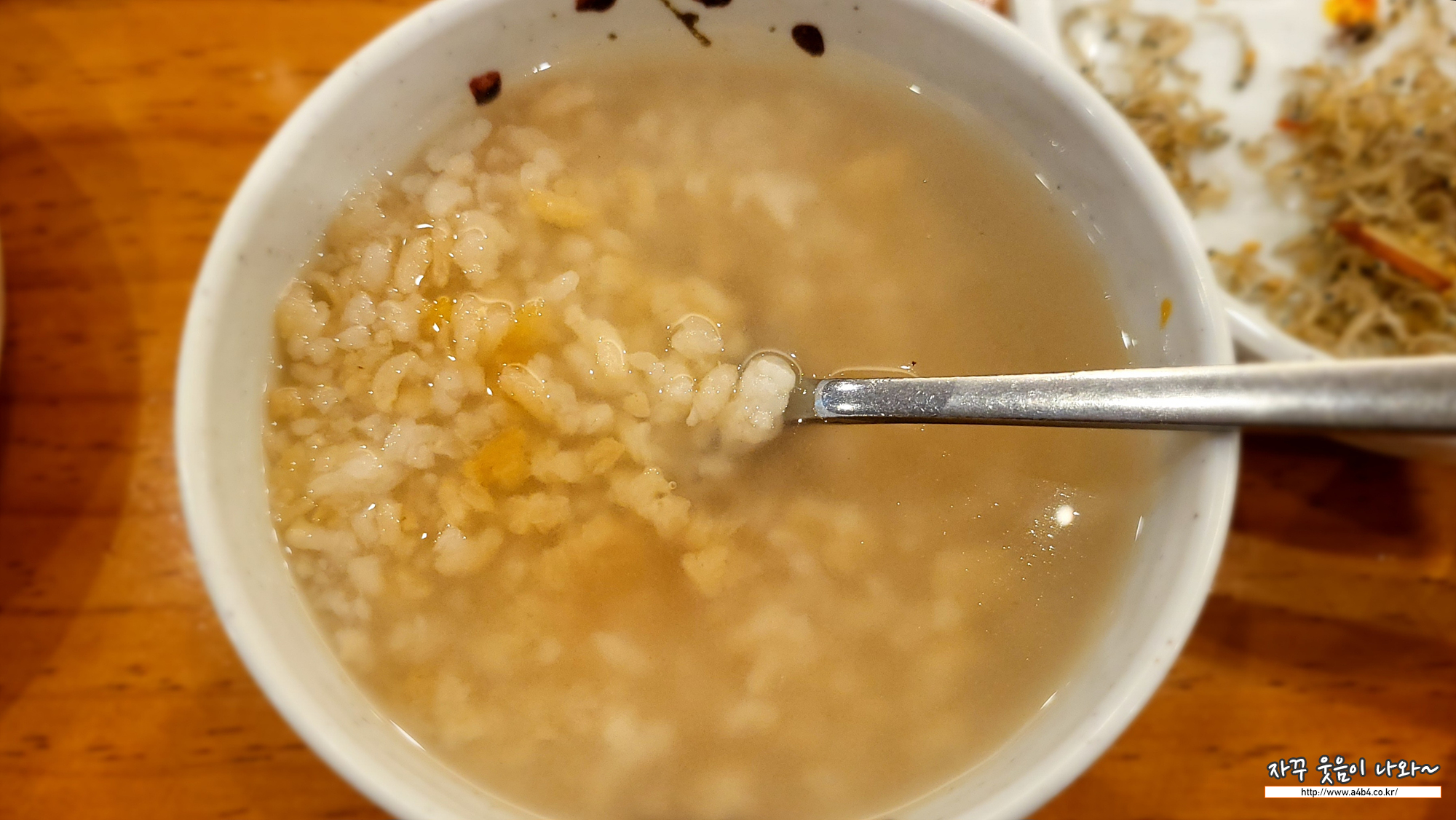 매화쌈밥 마무리는 뜨끈한 누릉지로... 밥도 많고. 깔끔하게 마무리 잘 했습니다.