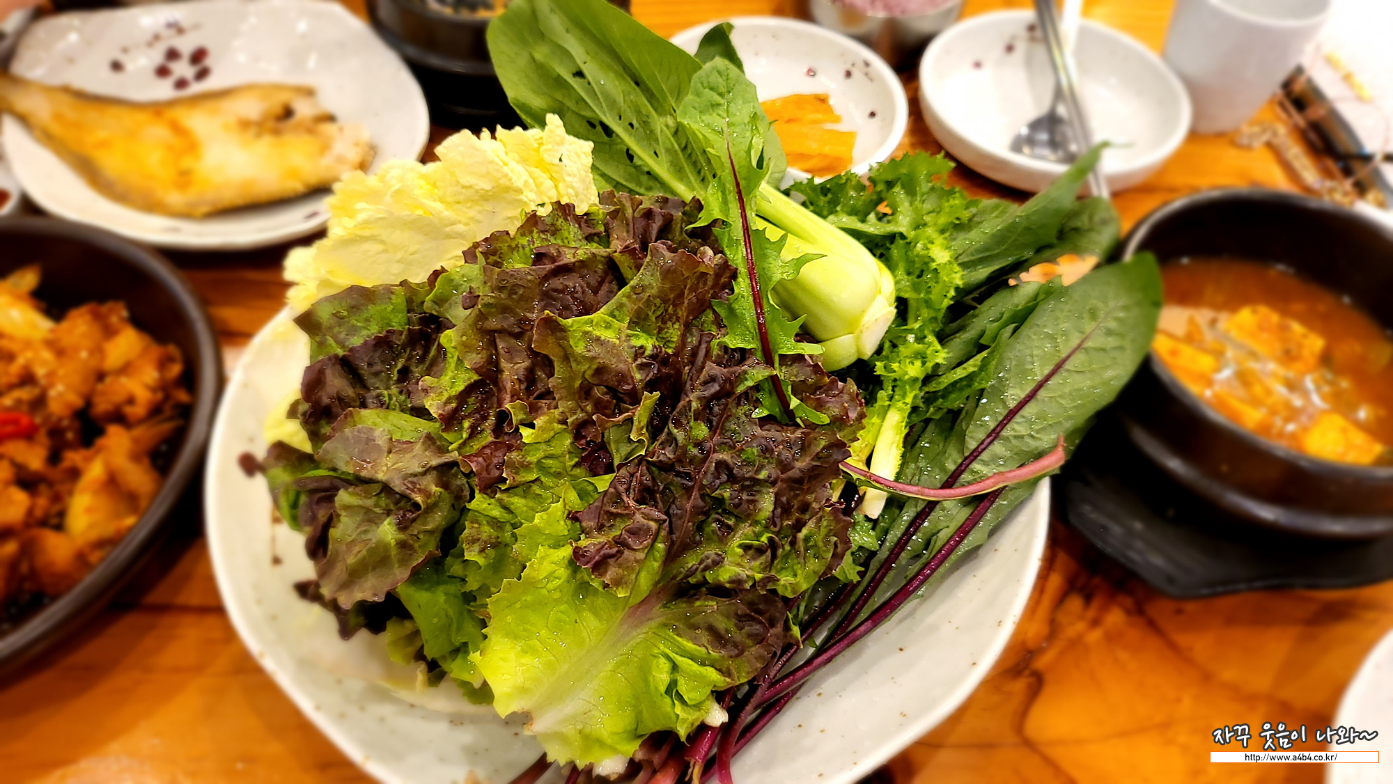 우렁쌈장과 된장찌개가 나오고요. 무엇보다도 짜지 않아서 너무 좋았습니다.