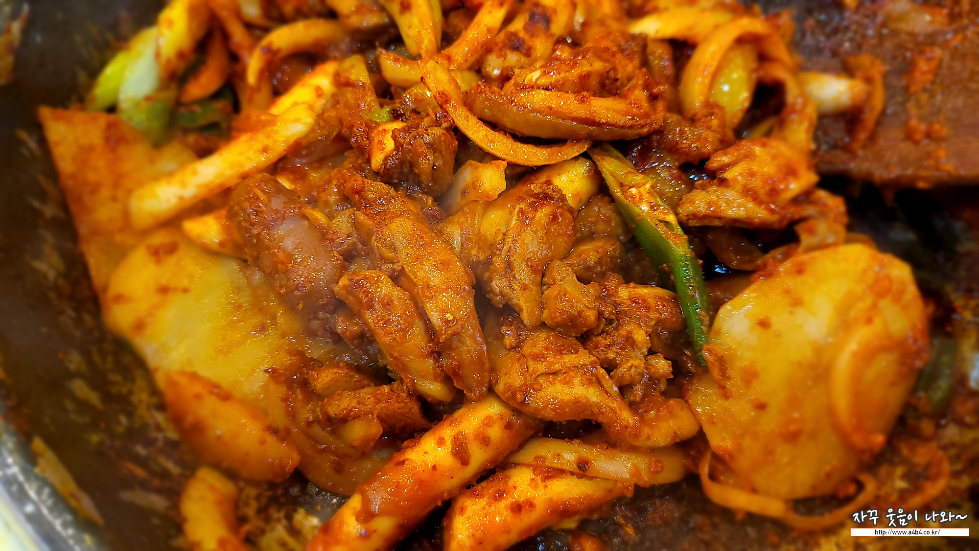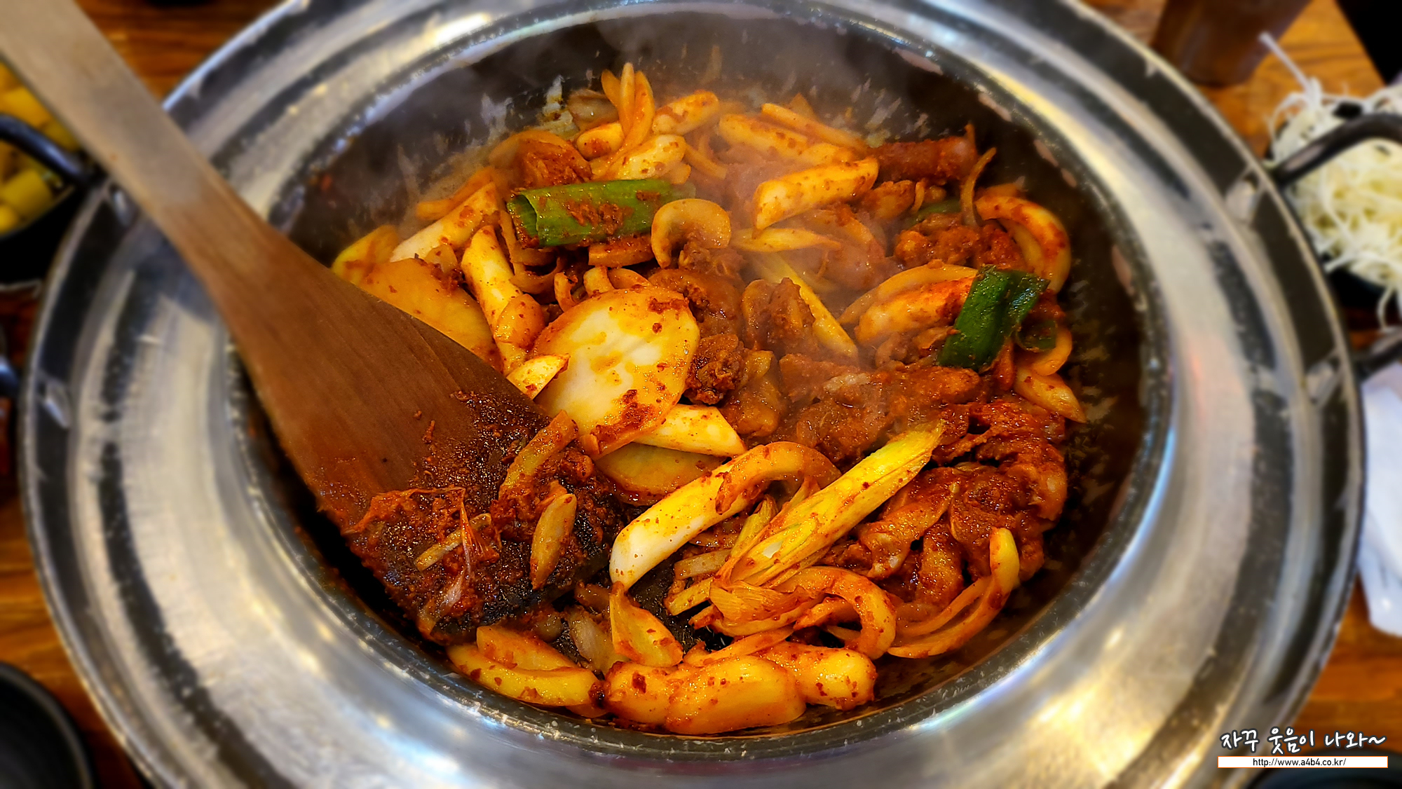 매콤한 닭갈비를 치즈와 함께 먹는 맛도 색다르네요.