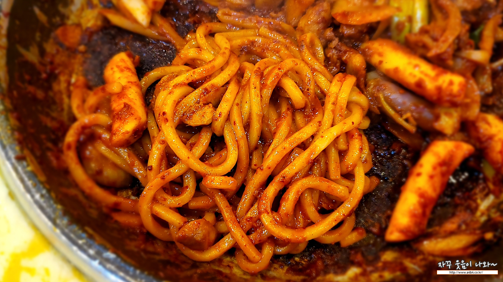 유가네 닭갈비 명동1호점에서 주문한 치즈퐁닭이 익어 갑니다. 맵기는 약간 맵지만 또 이정도 맵지 않으면 맛이 없을 것 같네요. 기본사리에 고구마 감자 떡사리도 조금 포함되어 있습니다. 취향에 따라 떡사리나 면사리 추가하세요.