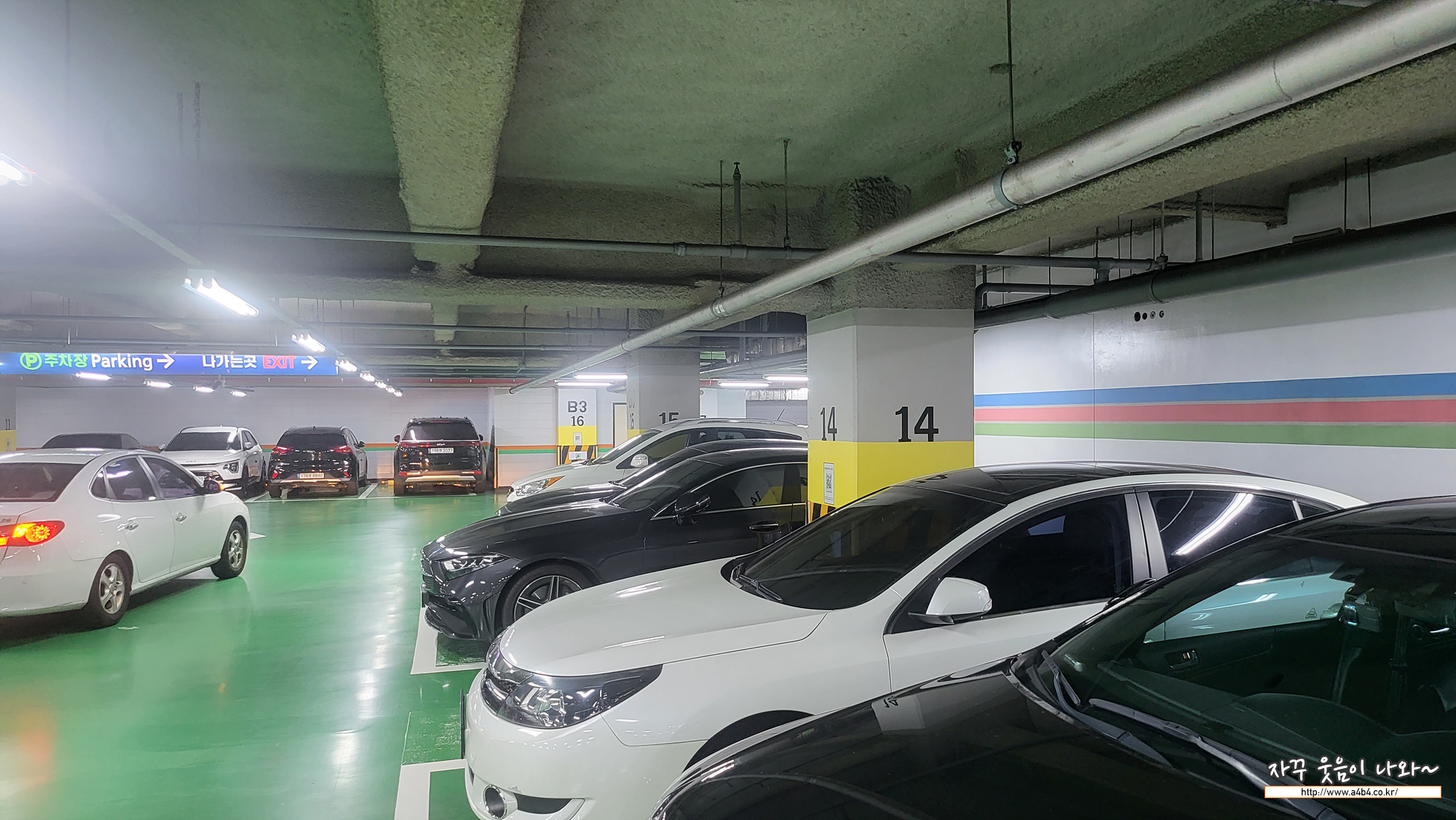 강남 교부문고 주차장 모습입니다. 주차장도 깔끔하게 잘 관리되고 있고 차간 폭도 매우 여유있지는 않지만 좁지는 않습니다. 그럭저럭 주차하기에는 문제없어 보입니다.