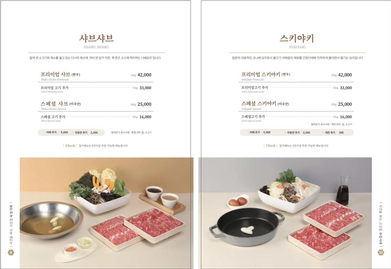 샤브샤브와 스키야키는 2~4만원대 가격을 보여줍니다.