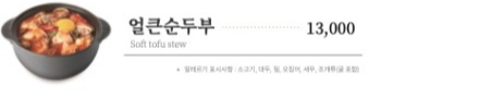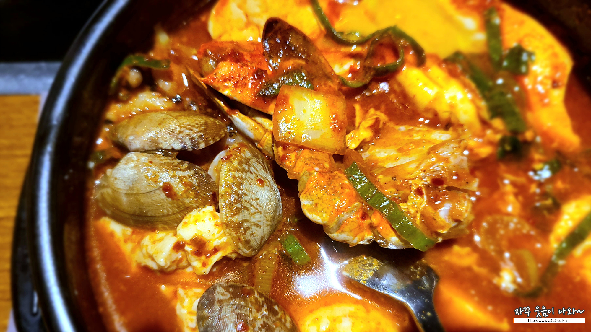 롯데월드몰 숙성시대 순두부는 제가 주문한 메뉴입니다. 작은 게 반마리와 바지락 조개, 새우들이 들어간 순두부찌개인데요. 다소 얼큰한 맛을 보입니다. 매운 음식을 선호하지 않는 분들에게는 추천 드리지 않지만, 역시나 순두부째개는 전문점에서 먹는 것을 추천 드리는 메뉴