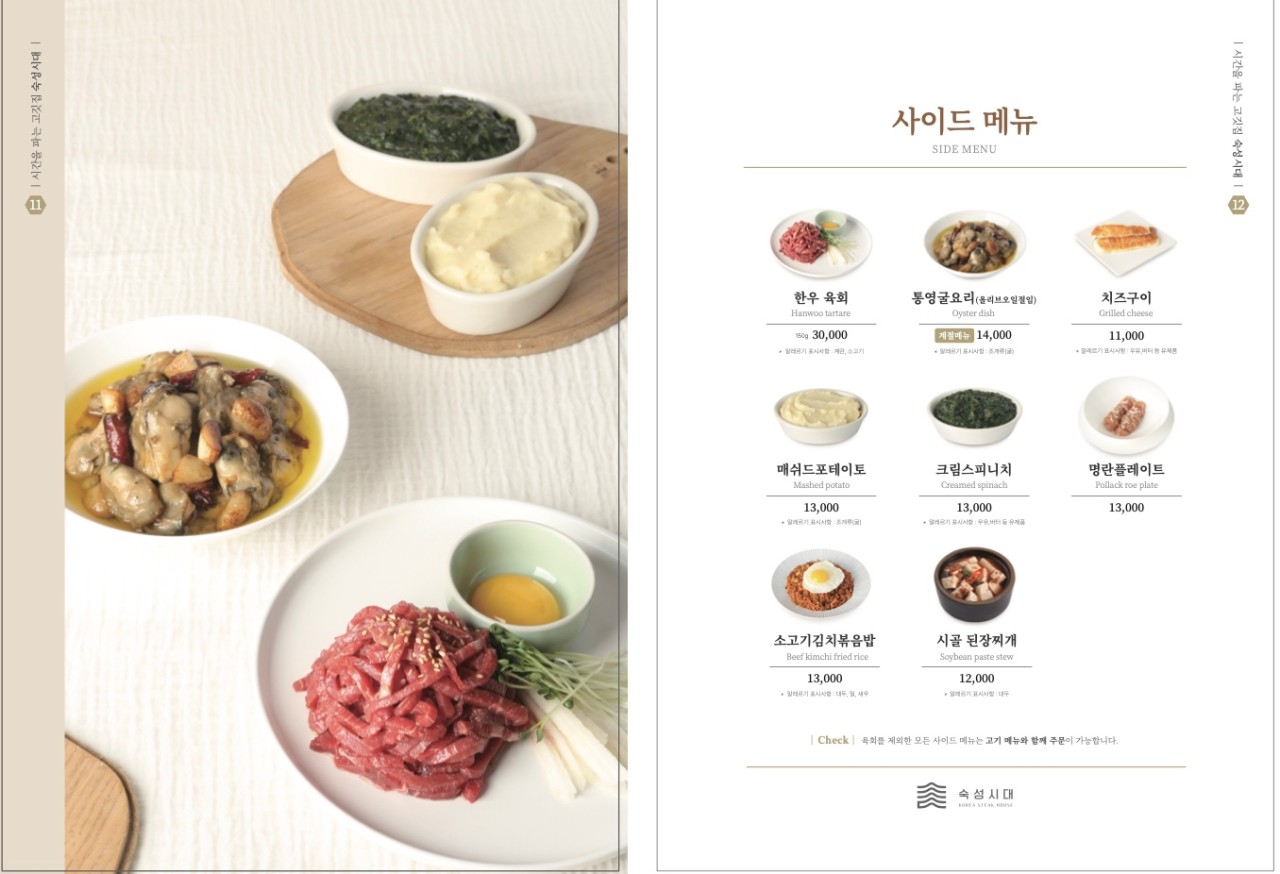 샤브샤브와 스키야키 메뉴도 몇 몇 테이블에서도 식사 하시네요. 이 외에 같이하면 좋을 것 같은 숙성시대 사이드메뉴도 준비되어 있습니다.