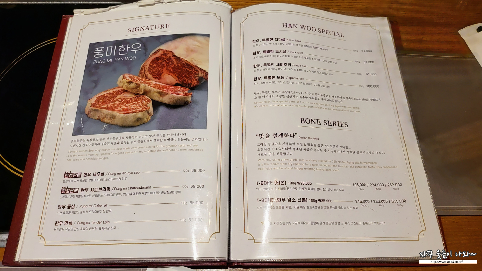 한우와 와규 메뉴는 가격이 좀 있습니다. 100g에 6~7만원 가격을 보이네요.