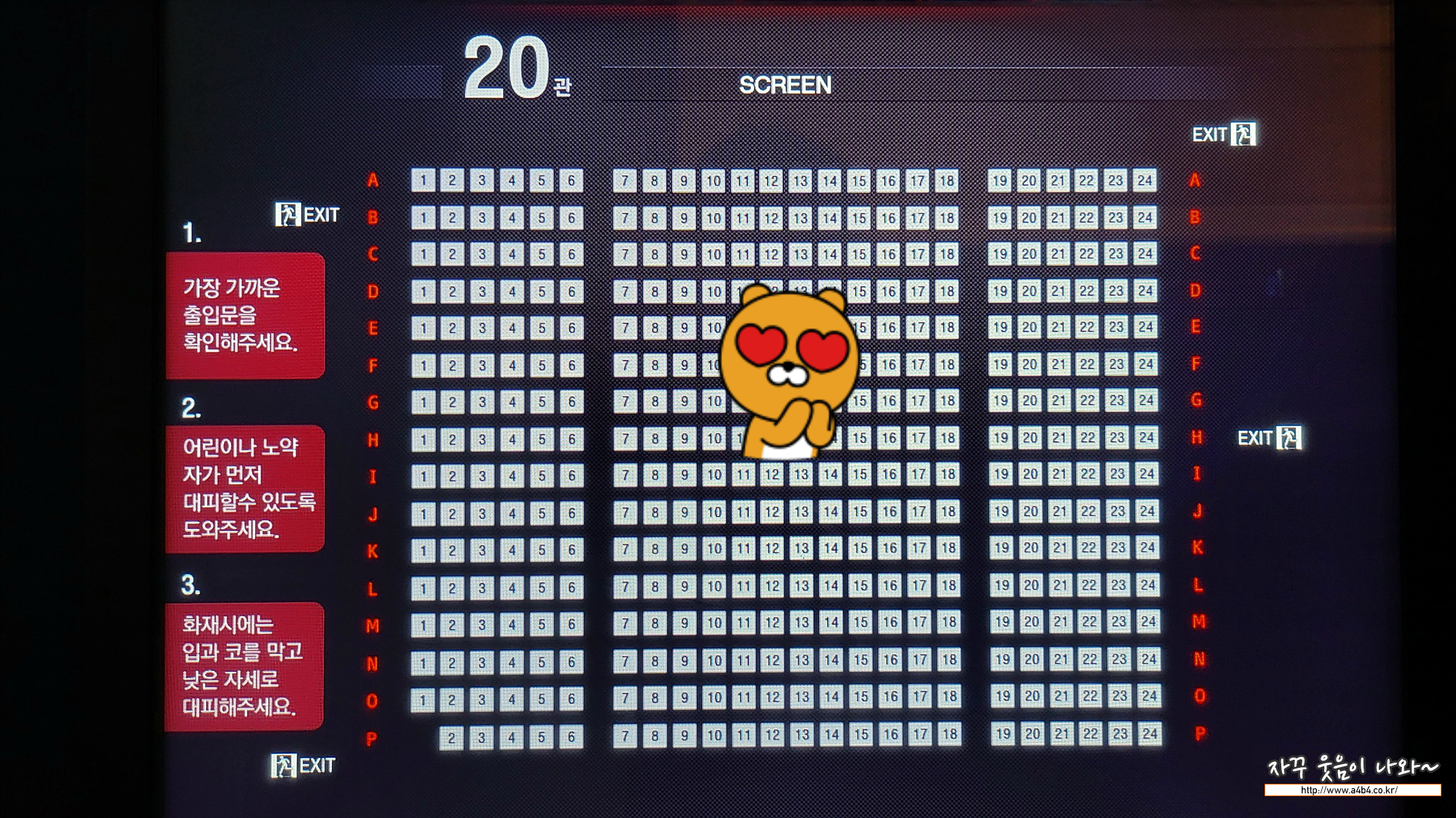 이중에서 가장 감상하기 좋은 곳은 I열의 12 13 번 좌석이라고 생각합니다. 딱 시야에 한 번에 스크린이 딱 들어오는...
