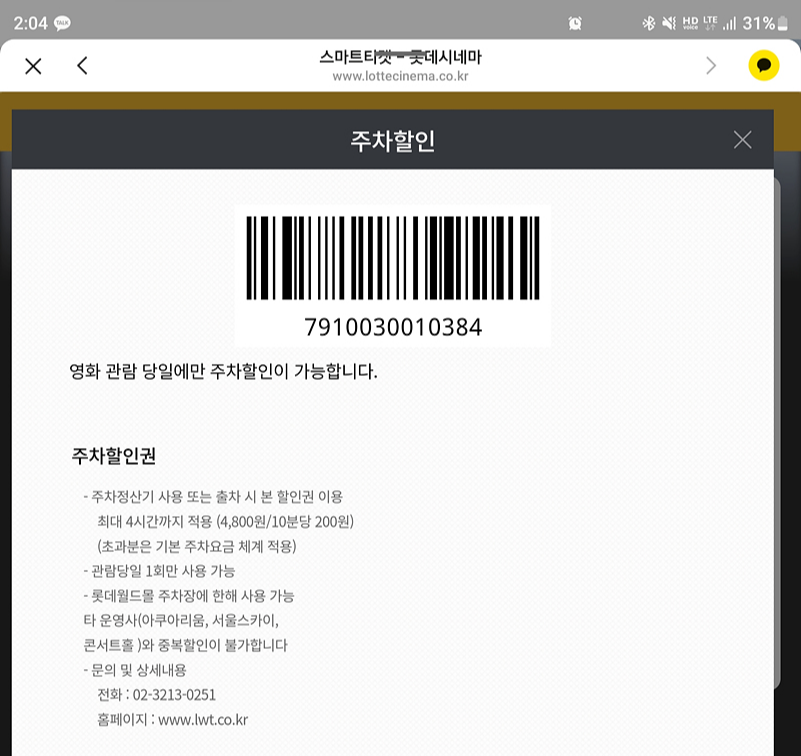 | 롯데시네마 월드타워 주차장 및 주차할인