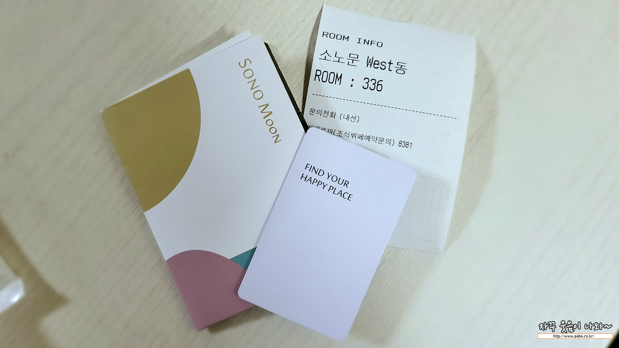 저희는 소노문 델피노 고성 3층 336호를 배정 받았고요. 통로는 이렇게 구성되어 있습니다. 카드키는 한 장 주시는데요. 일반 신용카드를 꽃아 놓아도 방 기기는 정상작동 합니다.