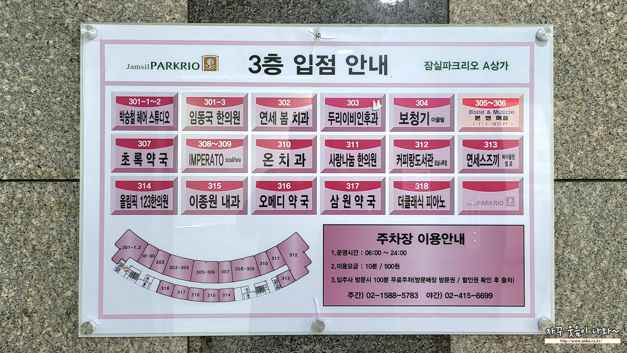 오늘은 잠실나루역 파크리오아파트와 장미아파트 사이에 위치한 파크리오a상가 입점 업체 및 병원에 대해 알아봤습니다.