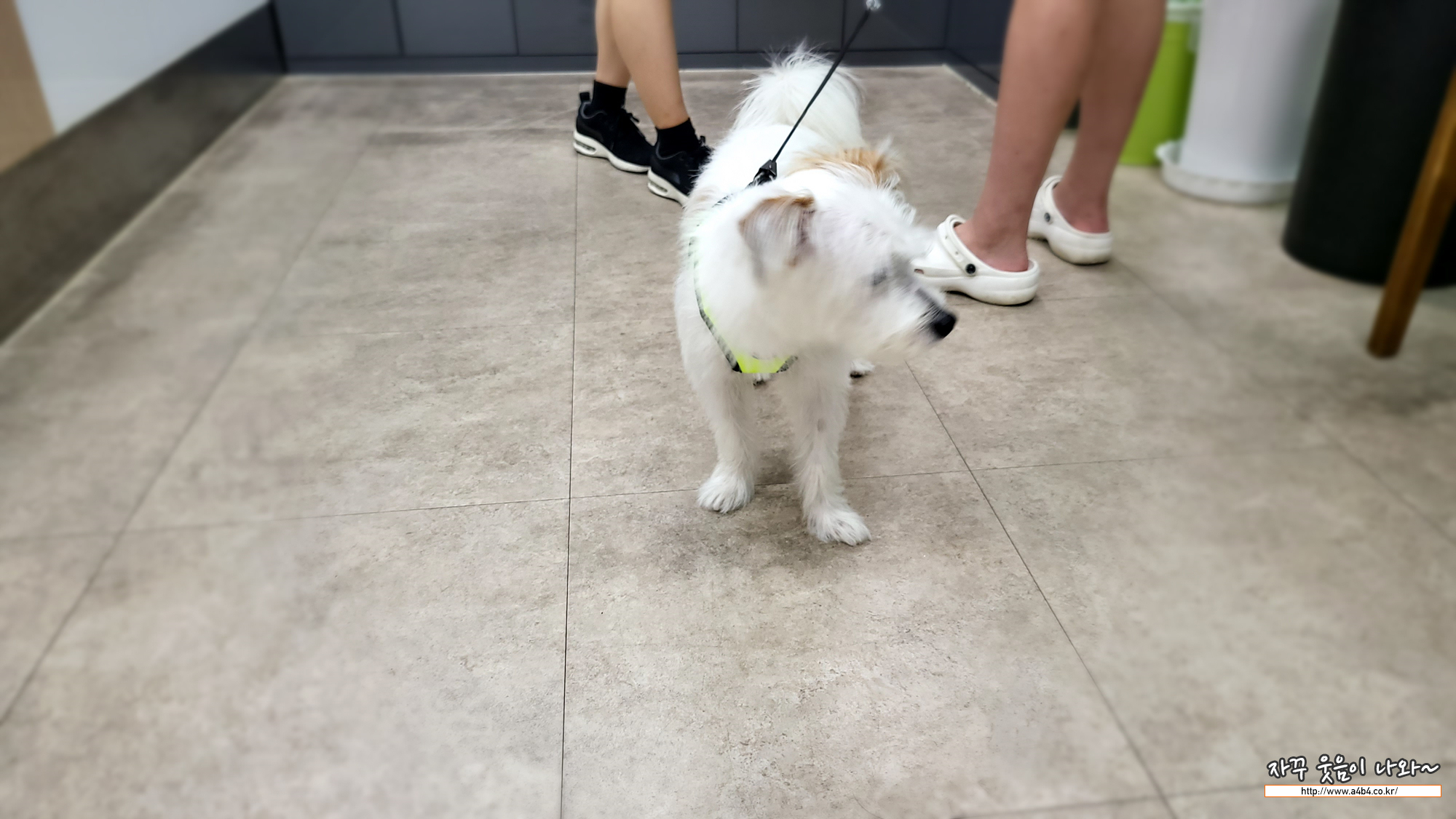 다음날에도 역시나 강아지 캑캑 거림은 계속되고, 아침에 바로 설탕이가 자주 가는 병원으로...