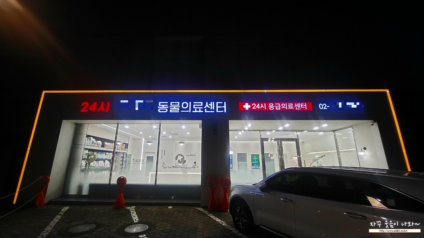 | 결국 소리를 듣다 못해 새벽에 24시 동물병원 방문합니다.