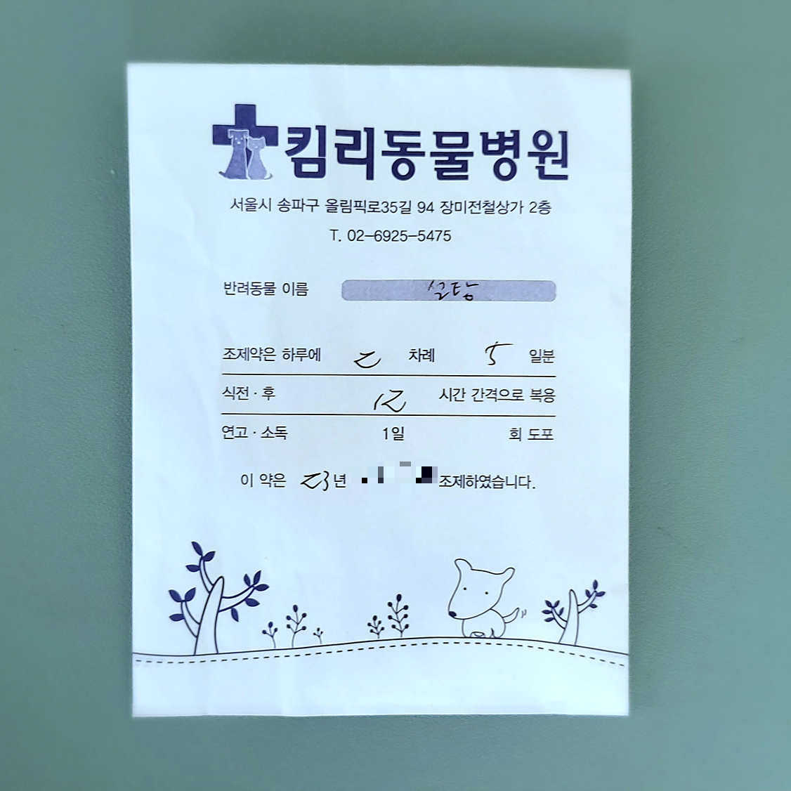 그래서 강아지 감기 판정 받고 양 받았습니다. 아침 저녁으로 하루 두 번 5일동안 강아지 감기약 먹는 것으로...