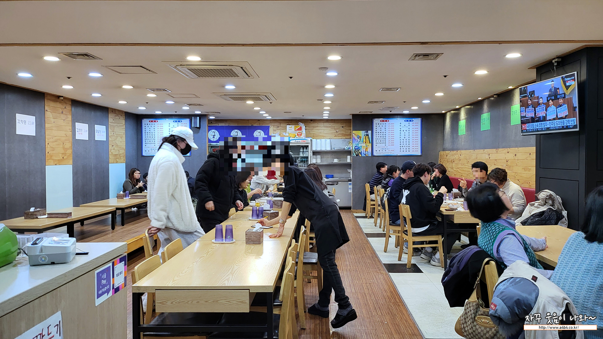 김명자 굴국밥 실내입니다. 좌식테이블과 의자테이블이 세팅되어 있고요 대략 15팀정도 수용이 가능합니다. 금요일 저녁에 방문했는데. 삼삼오오 술 손님들이 대부분이네요. 조용히 식사하기에는 다소 아쉬운 분위기입니다.