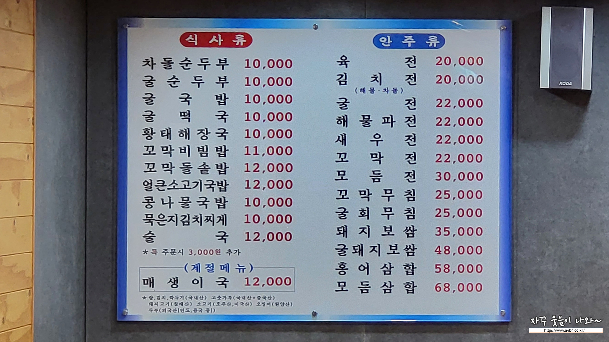 | 김명자 굴국밥 잠실점 메뉴 및 가격