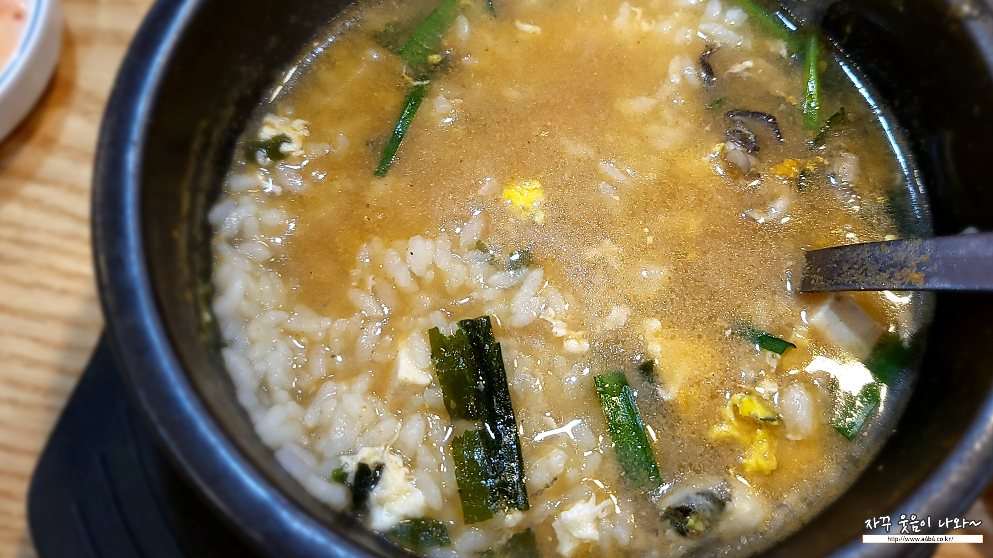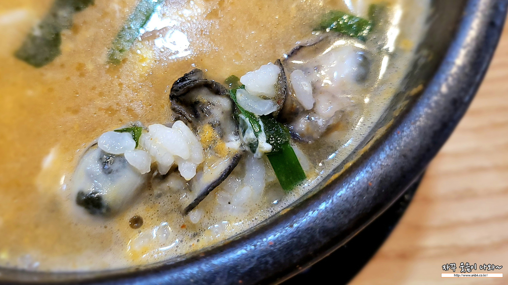 이곳의 대표 메뉴인 굴국밥입니다. 우선 국밥양이 엄청나네요.