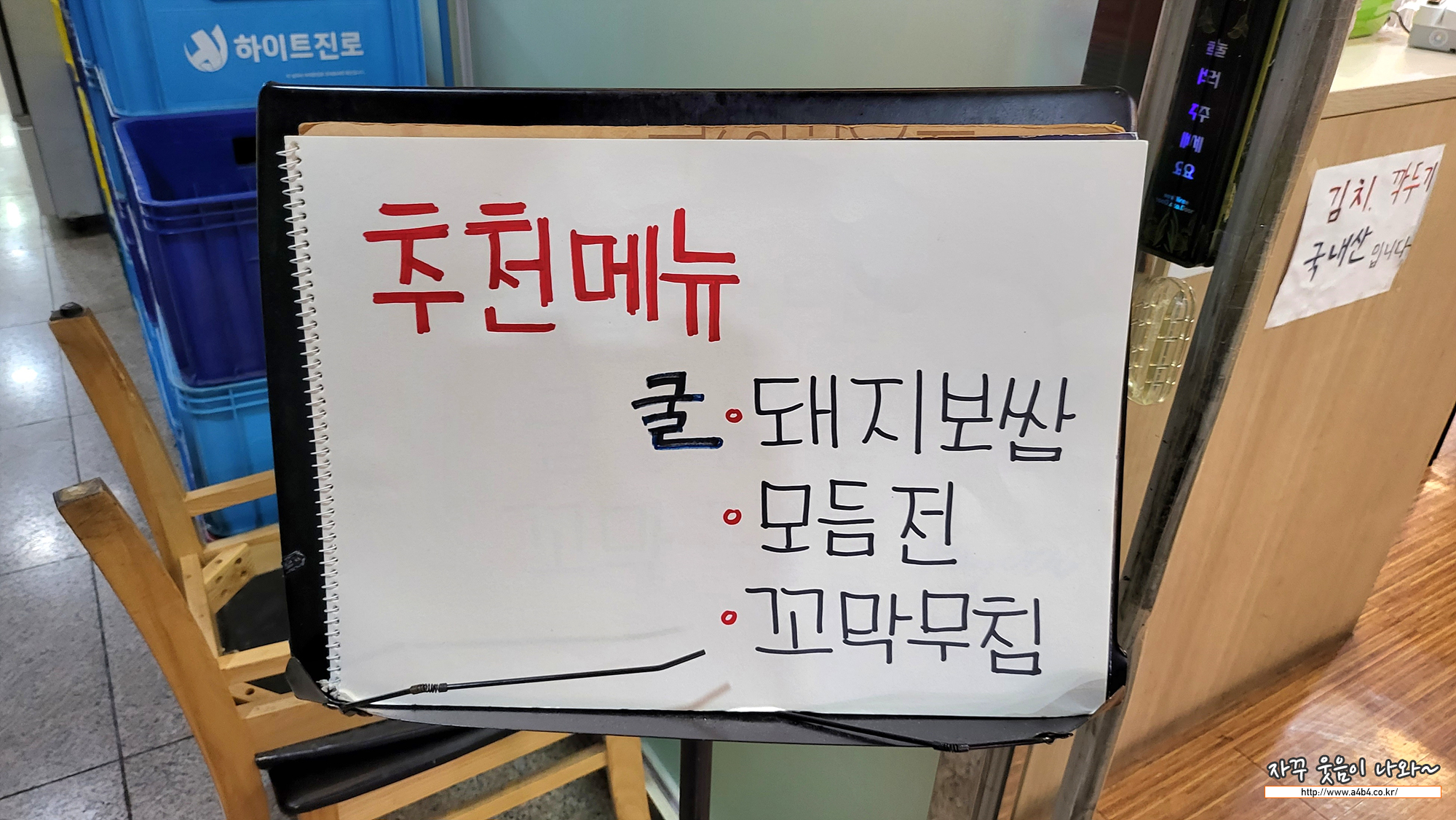 오늘의 추천 메뉴는 굴/돼지보쌈, 모듬전, 꼬막무침 이라고 하지만, 비오는날 뜨끈한 국밥이 생각나기도 하고...