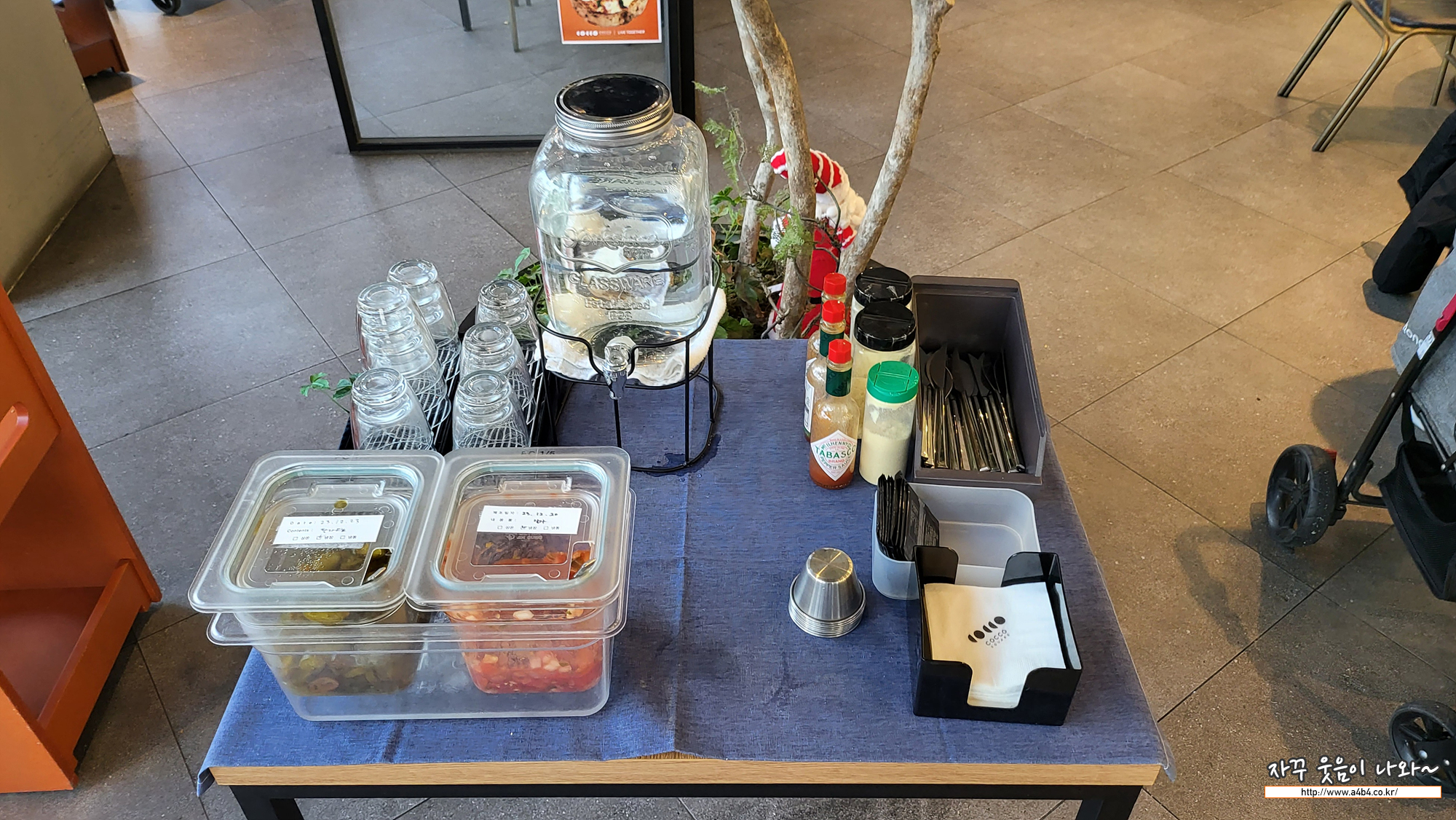 남양주 다산신도시 강아지 카페인 코코스퀘어 현대 스페이스원점 반찬은 셀프시스템으로 운영됩니다.