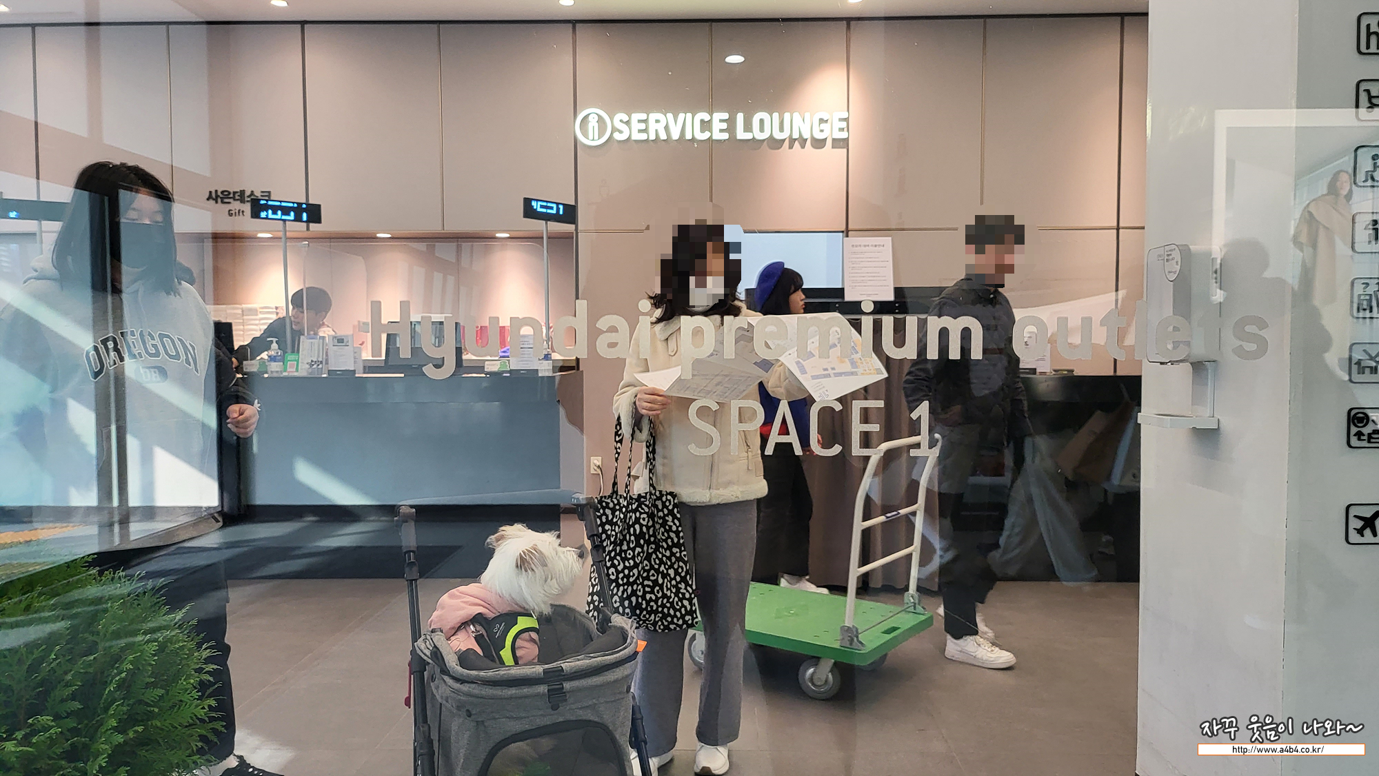 남양주 현대 프리미엄 아울렛 다산점 1층 서비스라운지 에서는 개모차로 불리는 반려견 프롤러 무상으로 대여가 가능합니다. 이곳 스페이스원 서비스라운지로 들어오셔서 간단한 인증 후 개모차 대여가 가능합니다.
