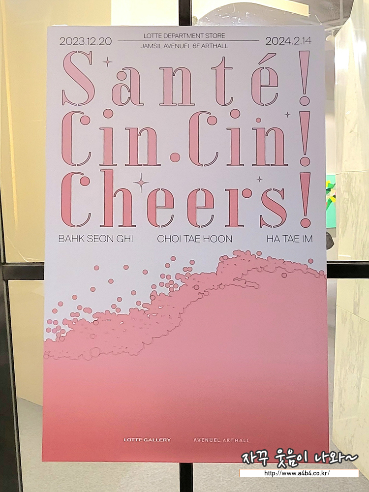 이번 Santé! Cin Cin! Cheers! 전시회는 잠실 롯데월드몰 타워 6층에 위치한 롯데갤러리 잠실에서 2024년 2월 14일까지 열릴 예정입니다.