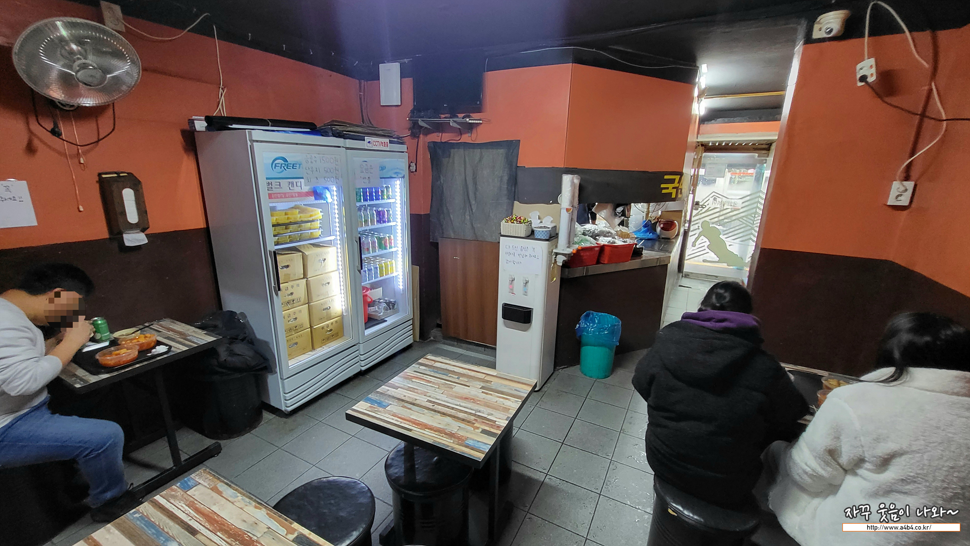 국민떡볶이 성내점 실내입니다. 대략 열 개 내외의 테이블이 세팅되어 있네요. 4인 2인테이블로 삼삼오오 방문해서 먹을 수 있는 공간입니다. 모든 부분은 셀프이자 선불...