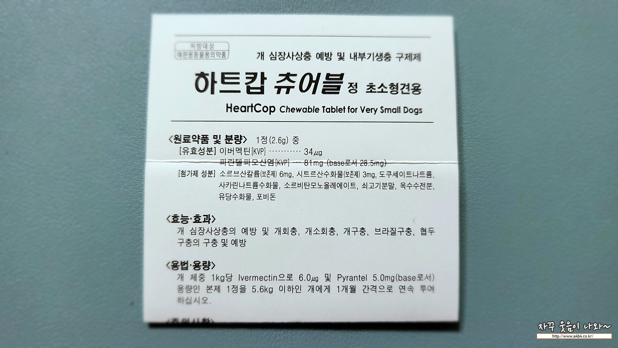 오늘은 동물용 의약품 제조업 (주)삼우메디안에서 생산 유통하는 하트캅 츄어블 (HEART COP chewable tablet) 사용후기 입니다.