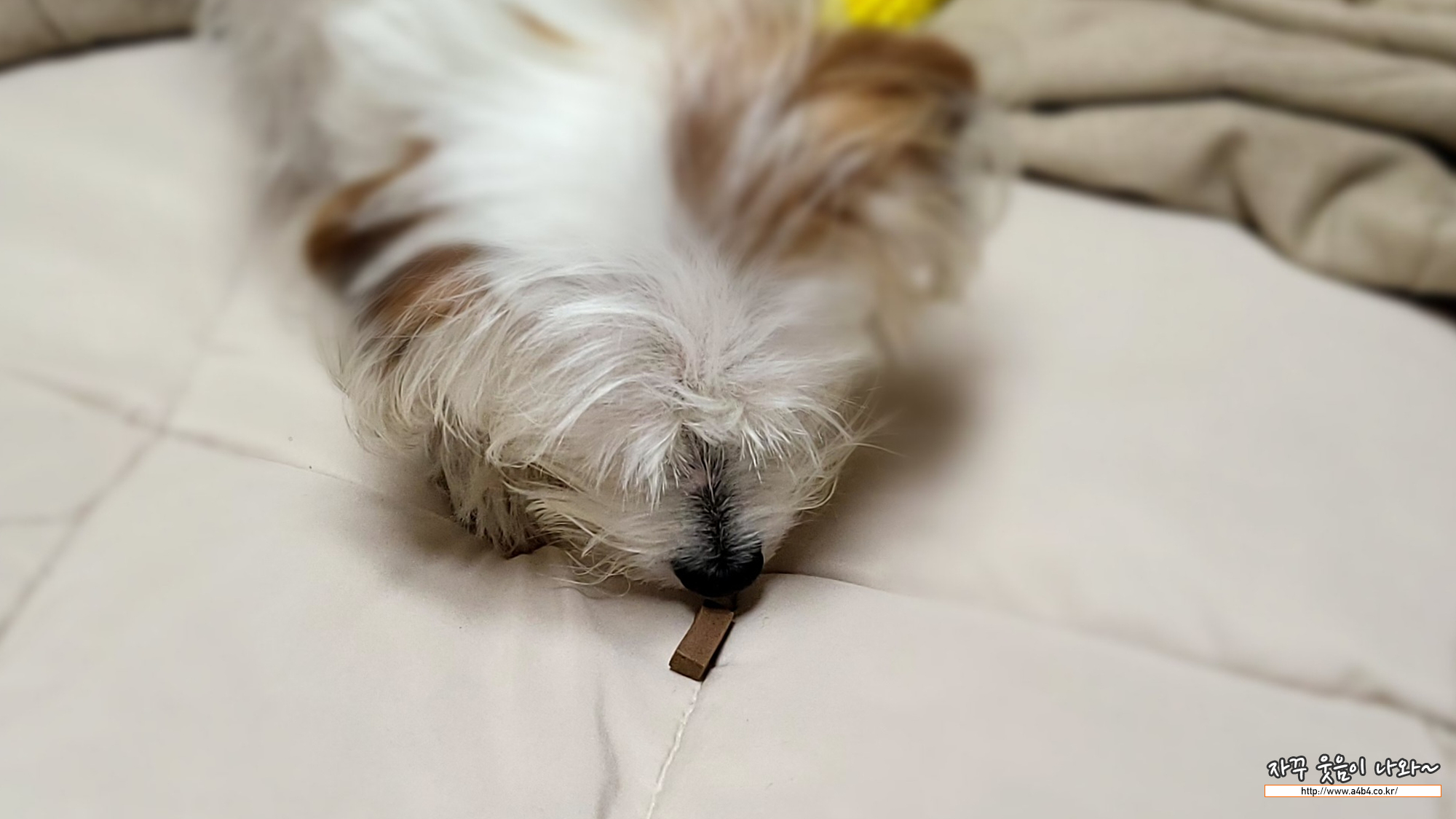 하트캅 츄어블 제품은 처음 먹어봤는데요. 거부감 전혀 없이 사료에 섞거나 할 필요없이 그냥 잘 먹네요.