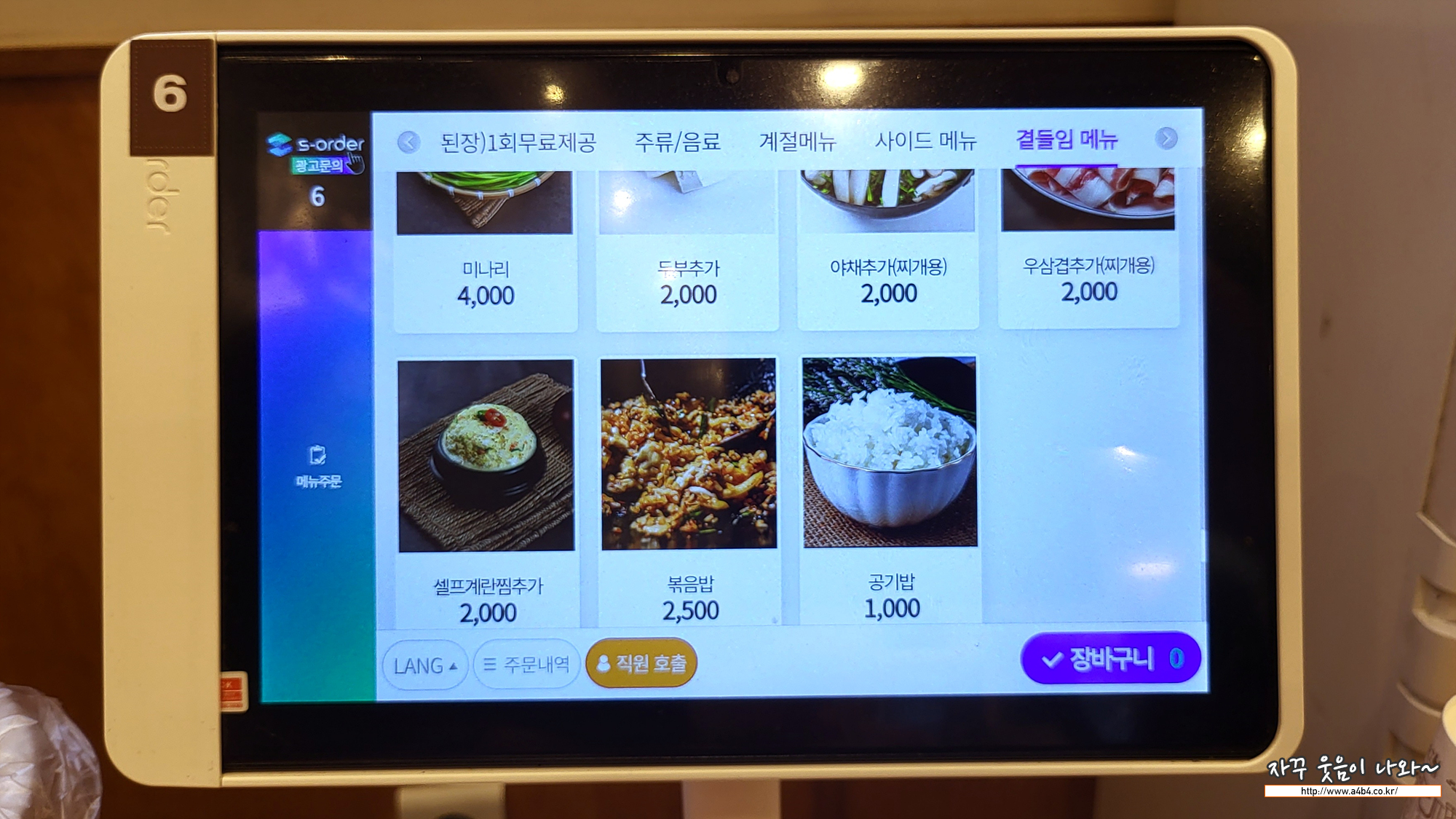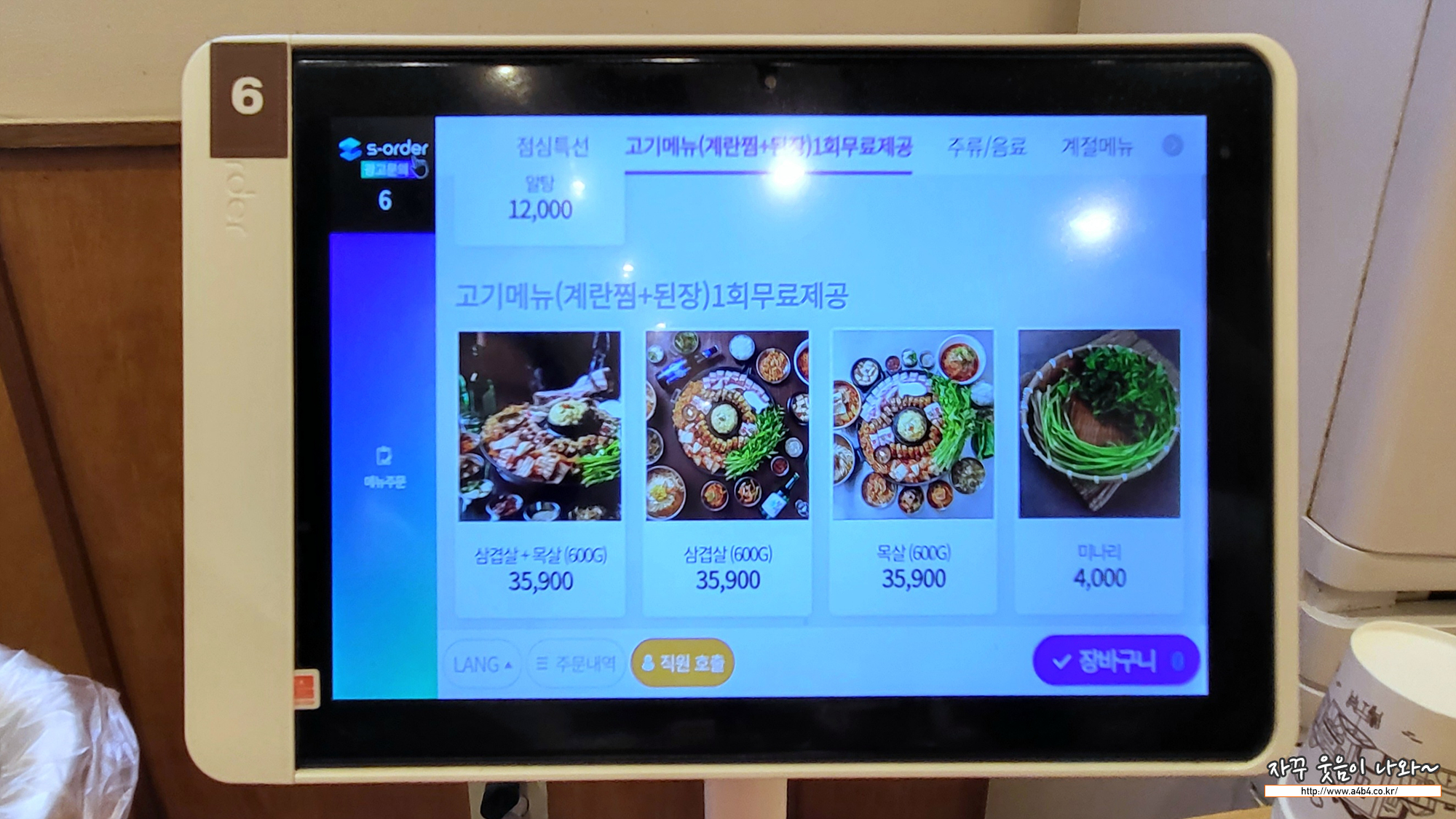 된장찌개와 계란찜은 앞에 주문한 삼겹살 600g 가격에 포함된 옵션입니다.