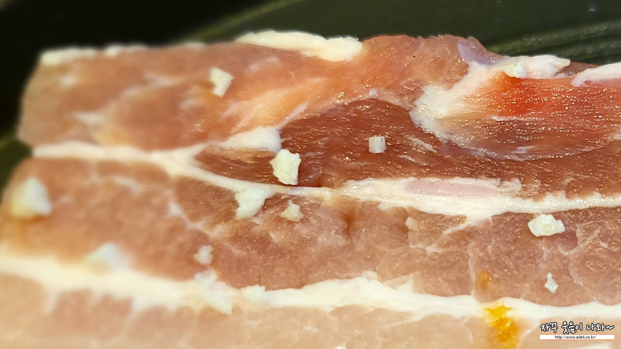 효자동 솥뚜껑 잠실새내점 삼겹살은 두툼한 덩어리 삼겹살이 나옵니다. 흑돼지 삼겹살이라고 하는데요.