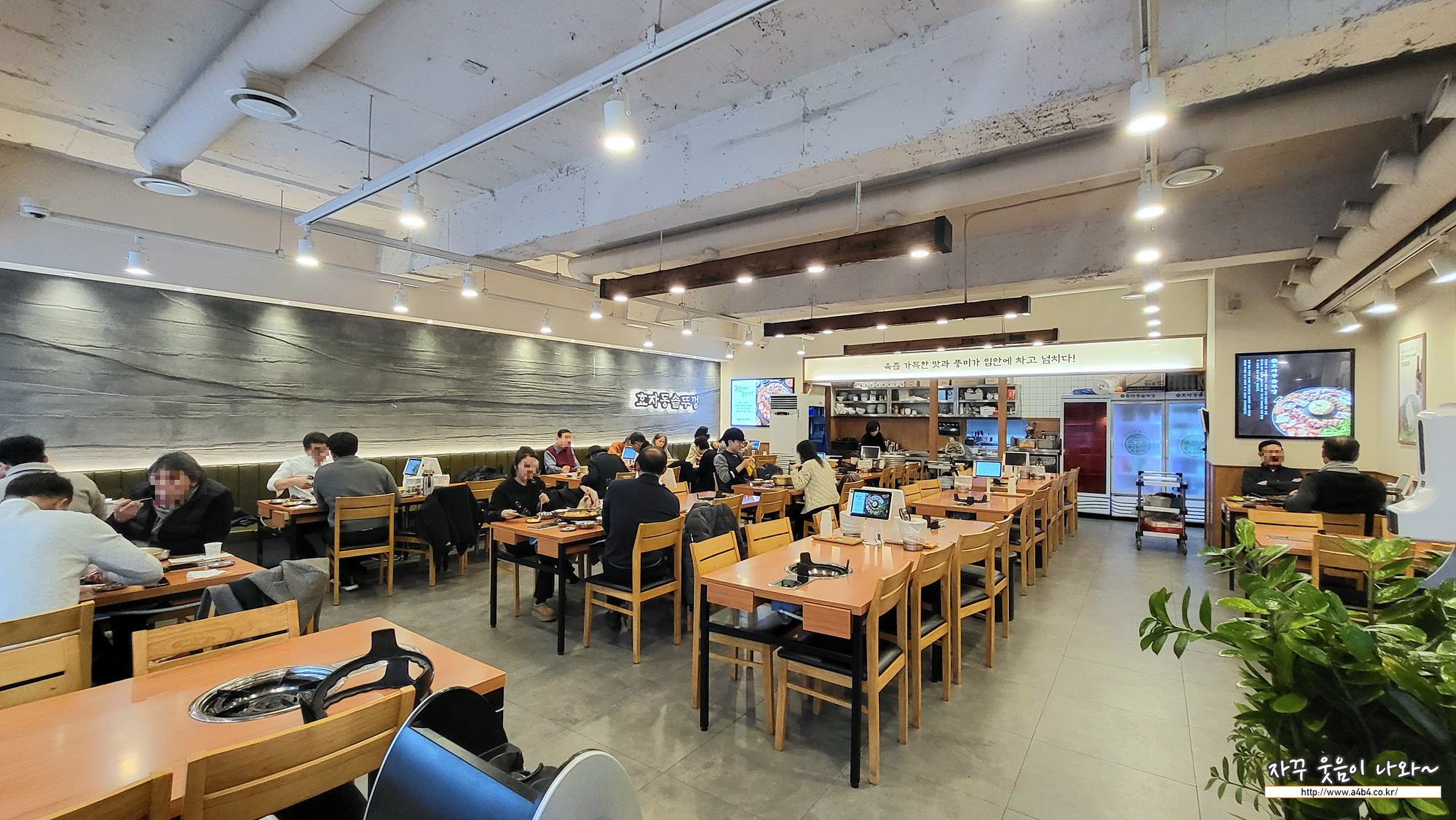 잠실새내 맛집 효자동 솥뚜껑 실내입니다. 시원하고 깔끔한 인테리어와 넓은 공간으로 구성되어 있습니다.